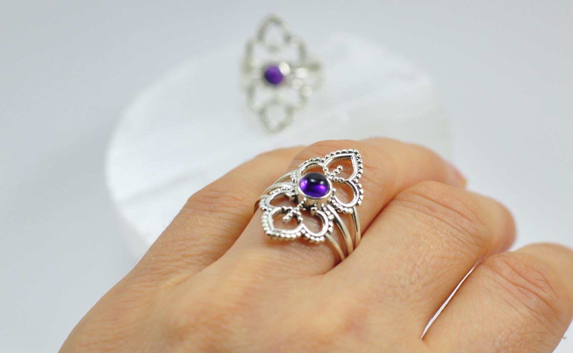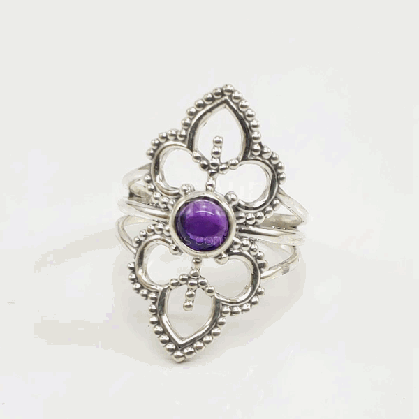 Anel em Prata de Lei 925 com Pedra de Ametista modelo "Monarquia"
