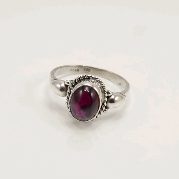 Anel em Prata com Granada Oval