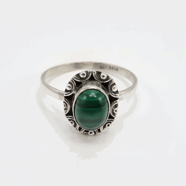 Anel em Prata de Lei 925 com Pedra Malaquita