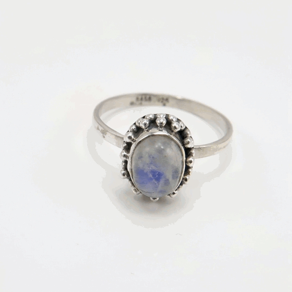 Anel Prata de Lei 925 com Pedra da Lua Oval