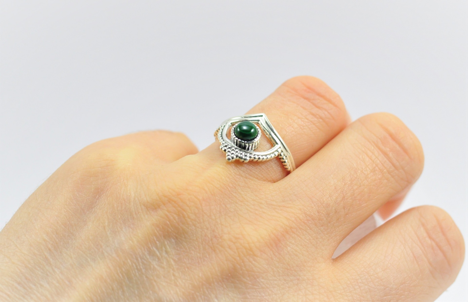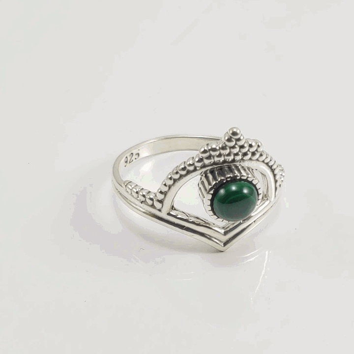Anel em Prata de Lei 925 com Pedra de Malaquita Modelo "Coroa"