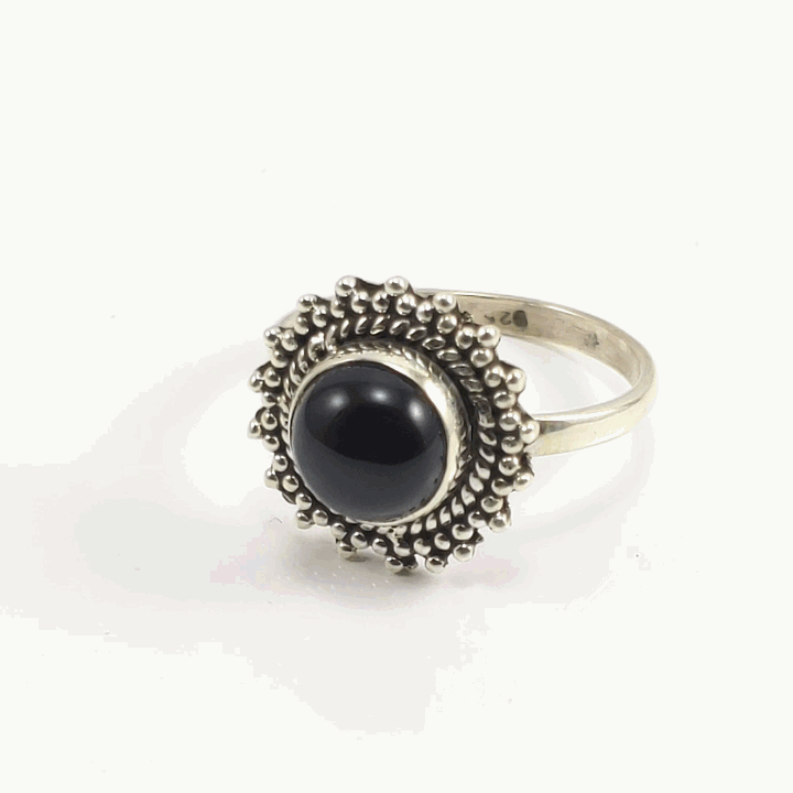 Anel em Prata de Lei 925 com Pedra ONIX Modelo "Sol"