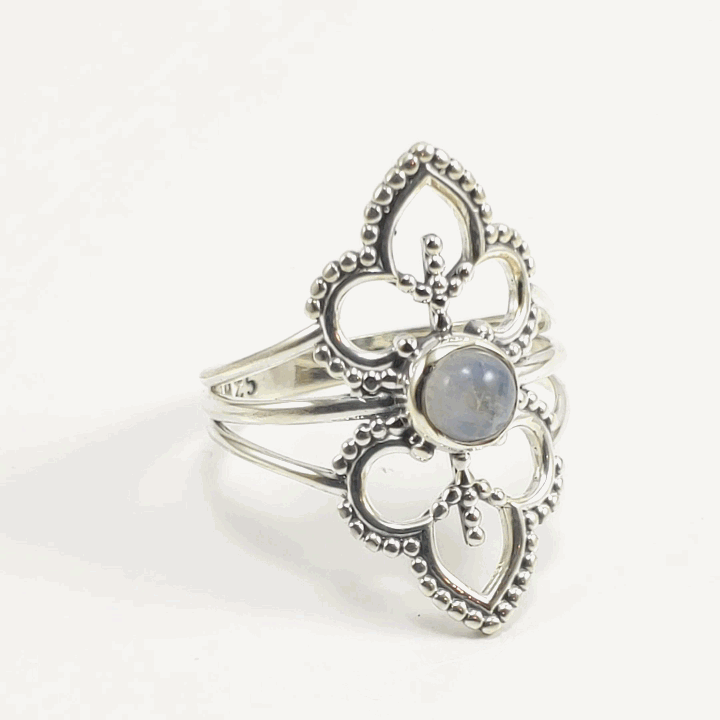 Anel em Prata de Lei 925 com Pedra da Lua Modelo "Monarquia"