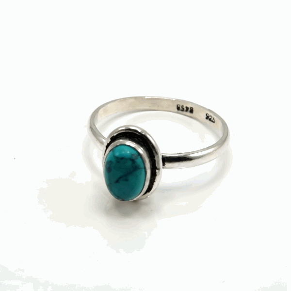 Anel Oval em Prata de Lei 925 com Turquesa
