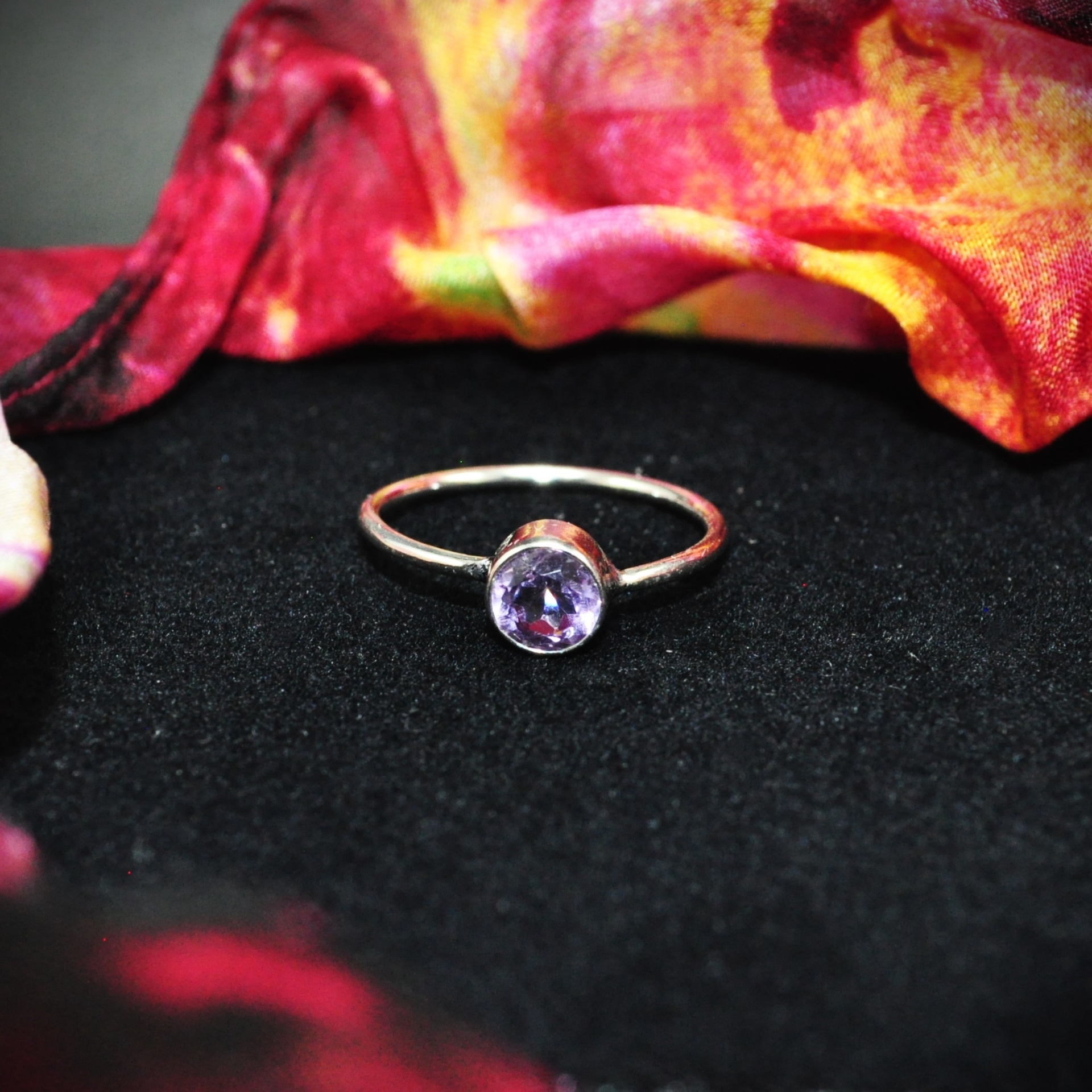 Anel Solitário Prata com Ametista