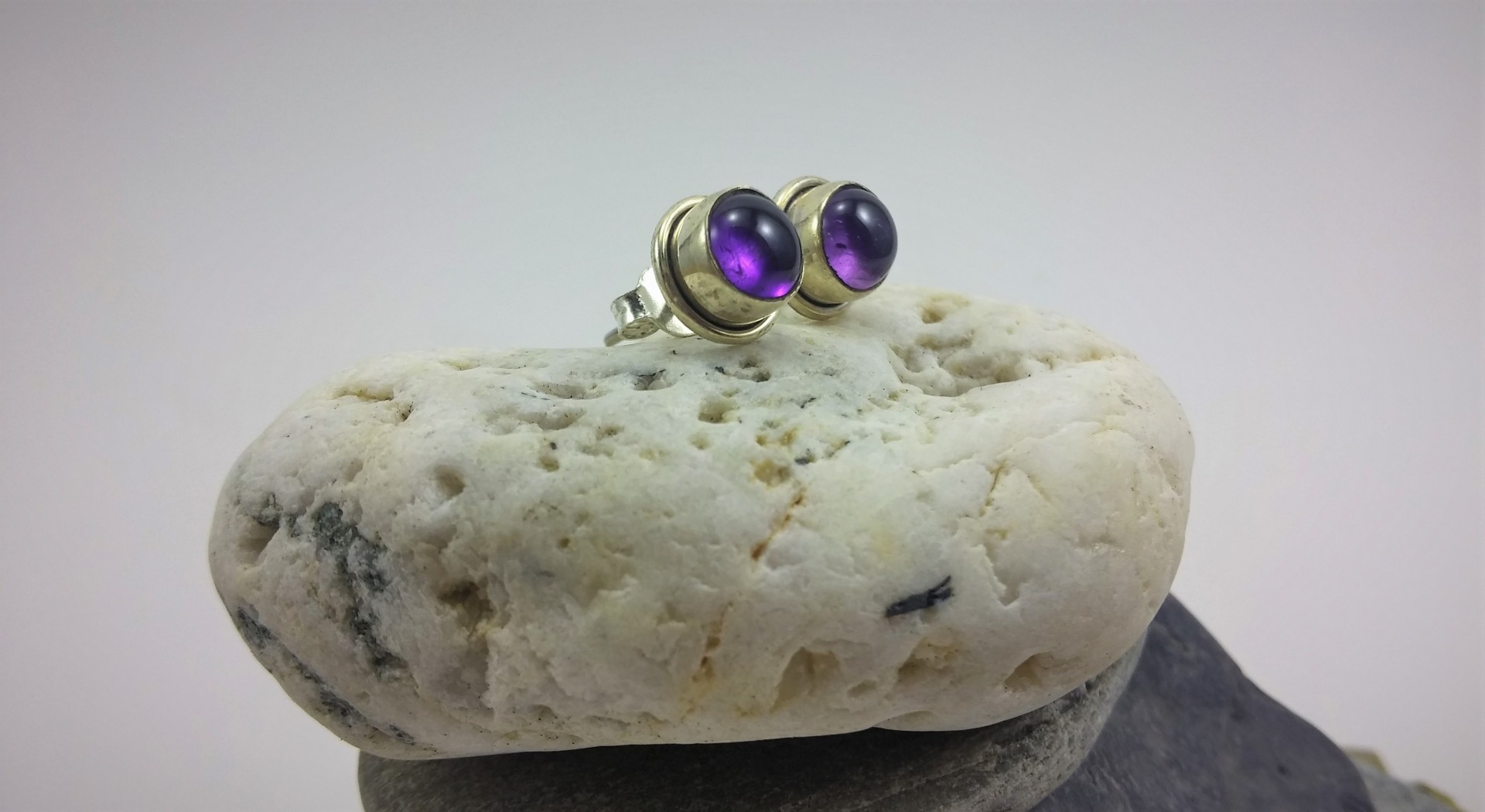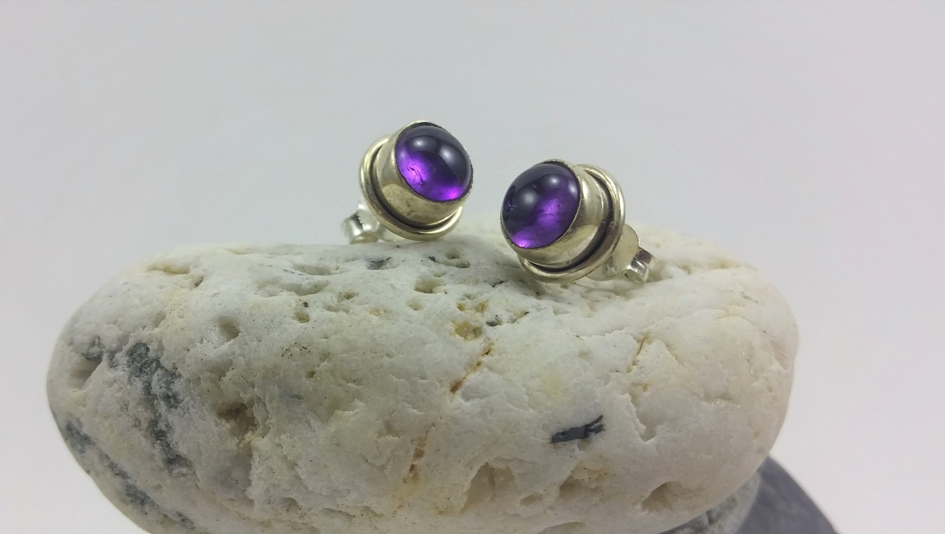 Brincos em Prata de Lei 925 com Pedra Ametista de boa qualidade!