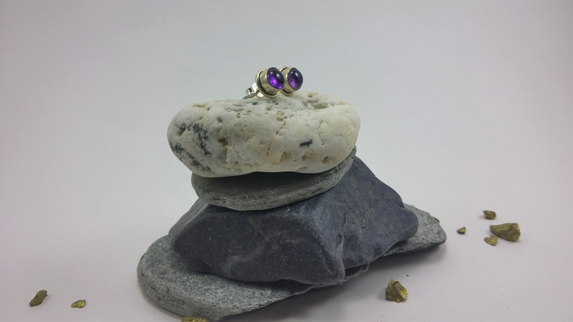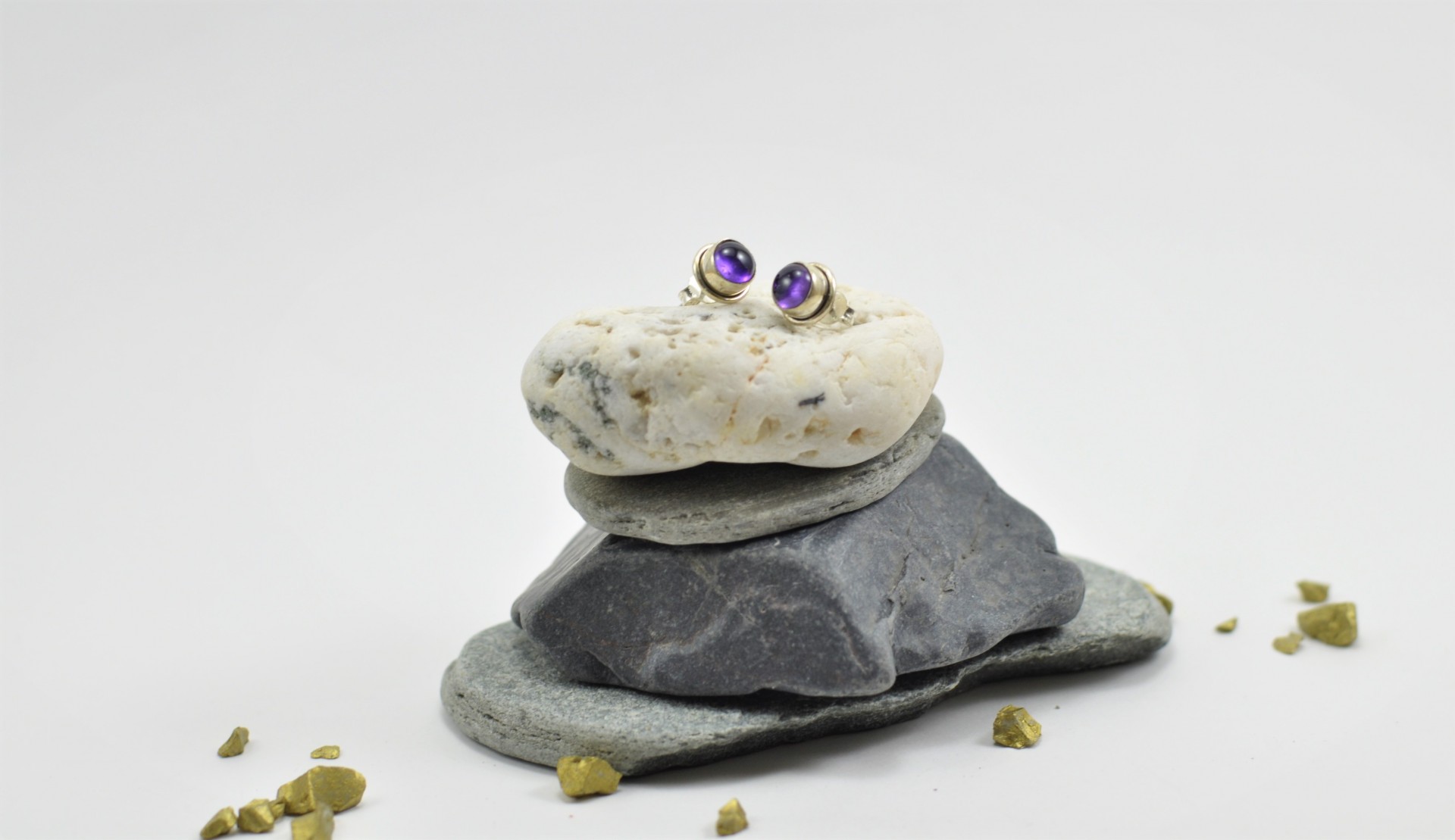 Brincos em Prata com pedra Ametista