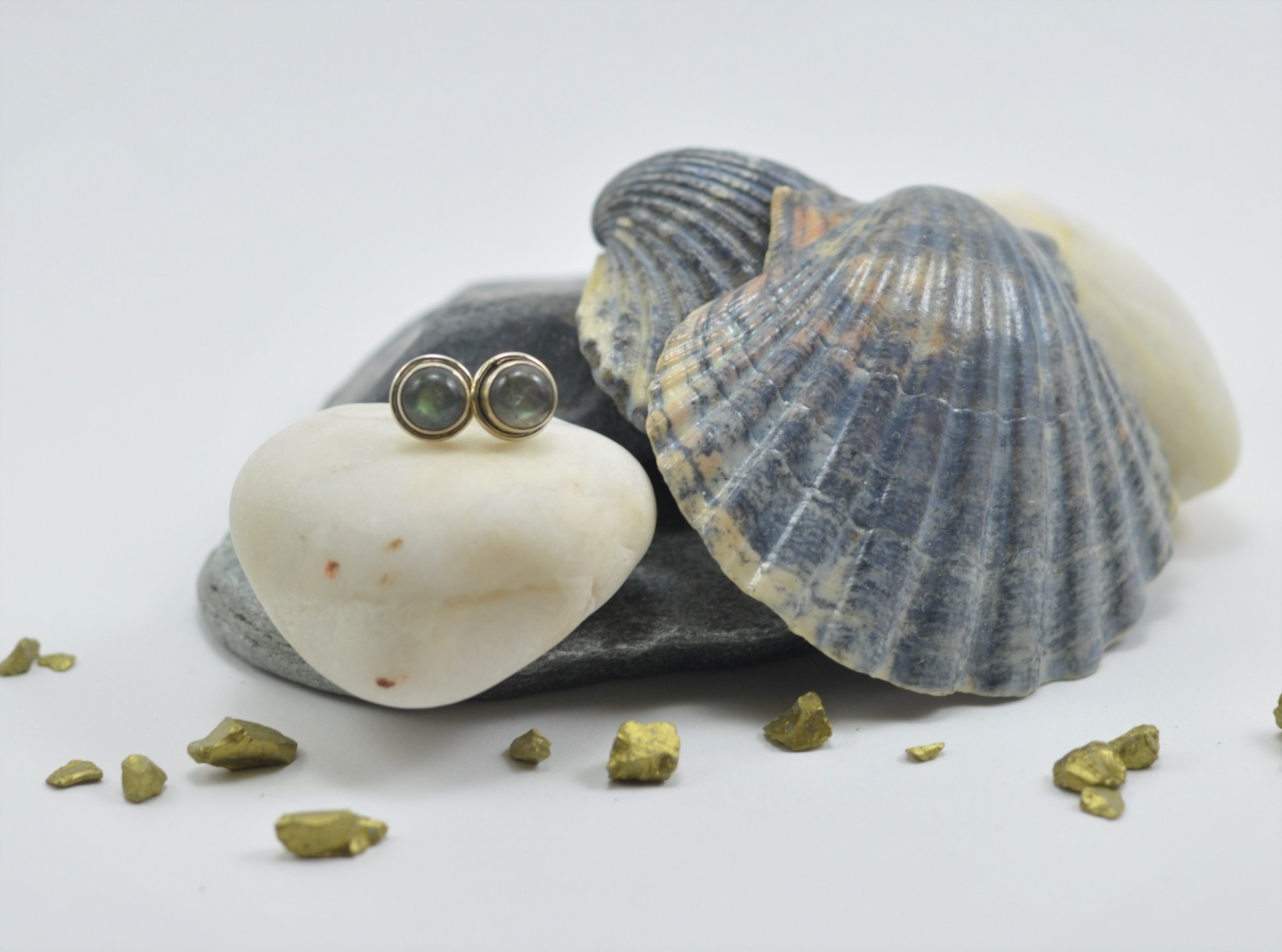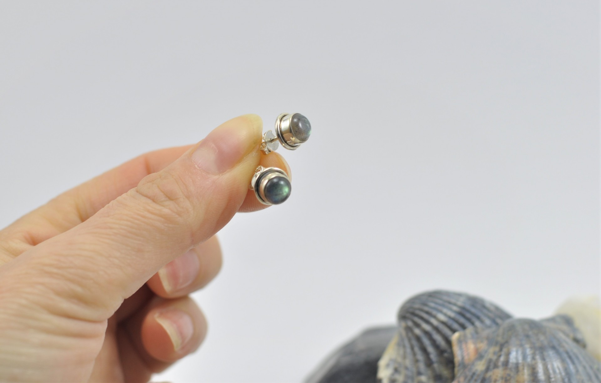 Brincos em Prata com pedra Labradorite