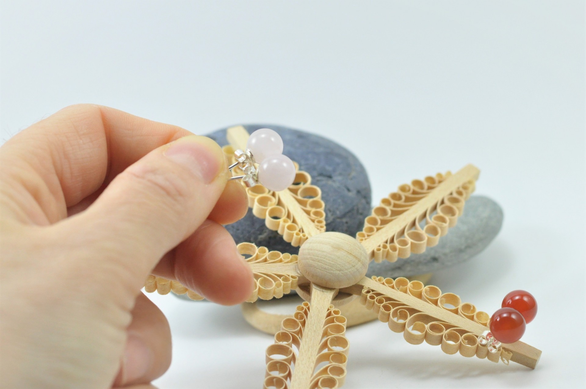 É um modelo simples e muito tradicional com cristais e pedras naturais.