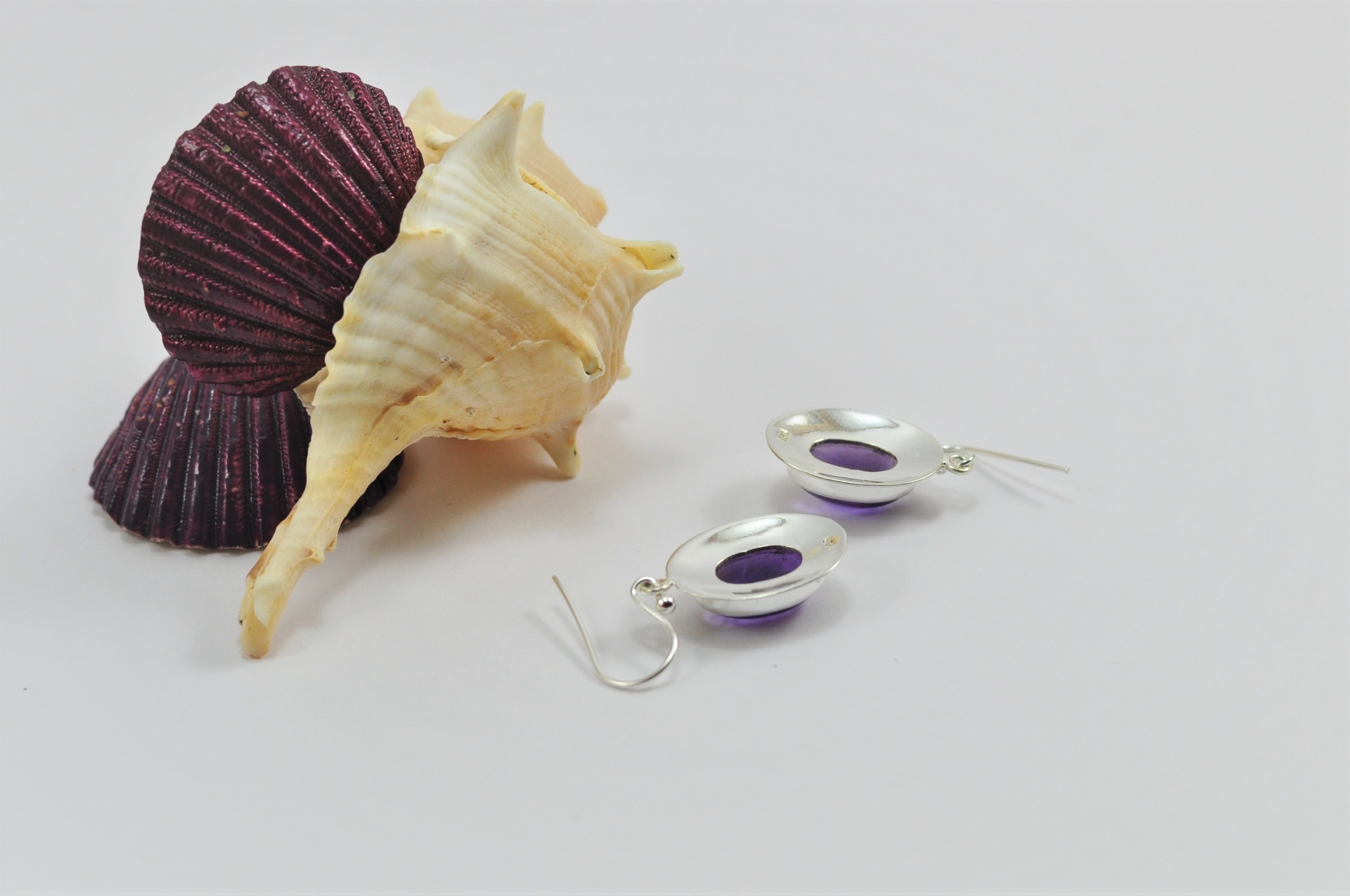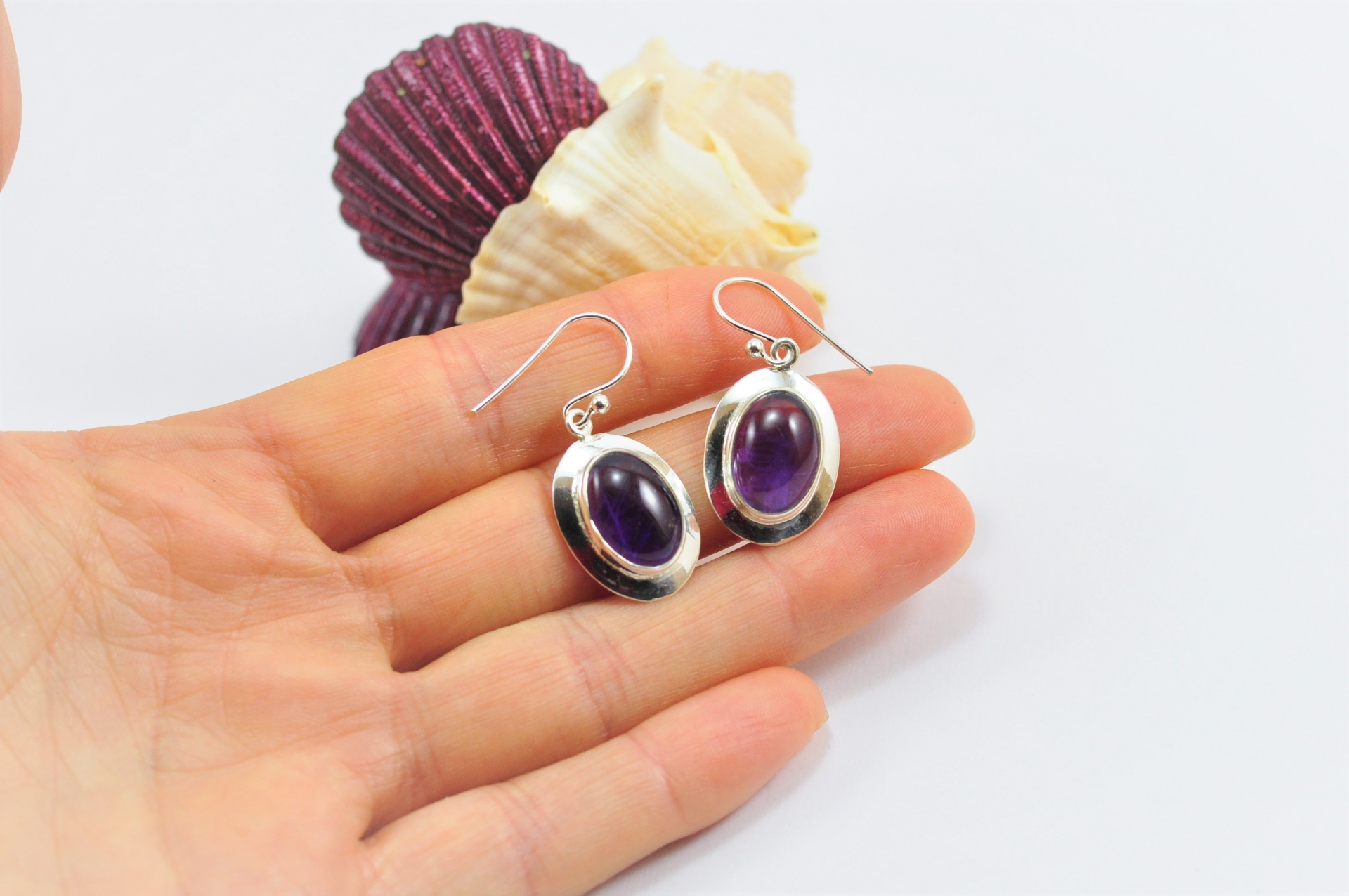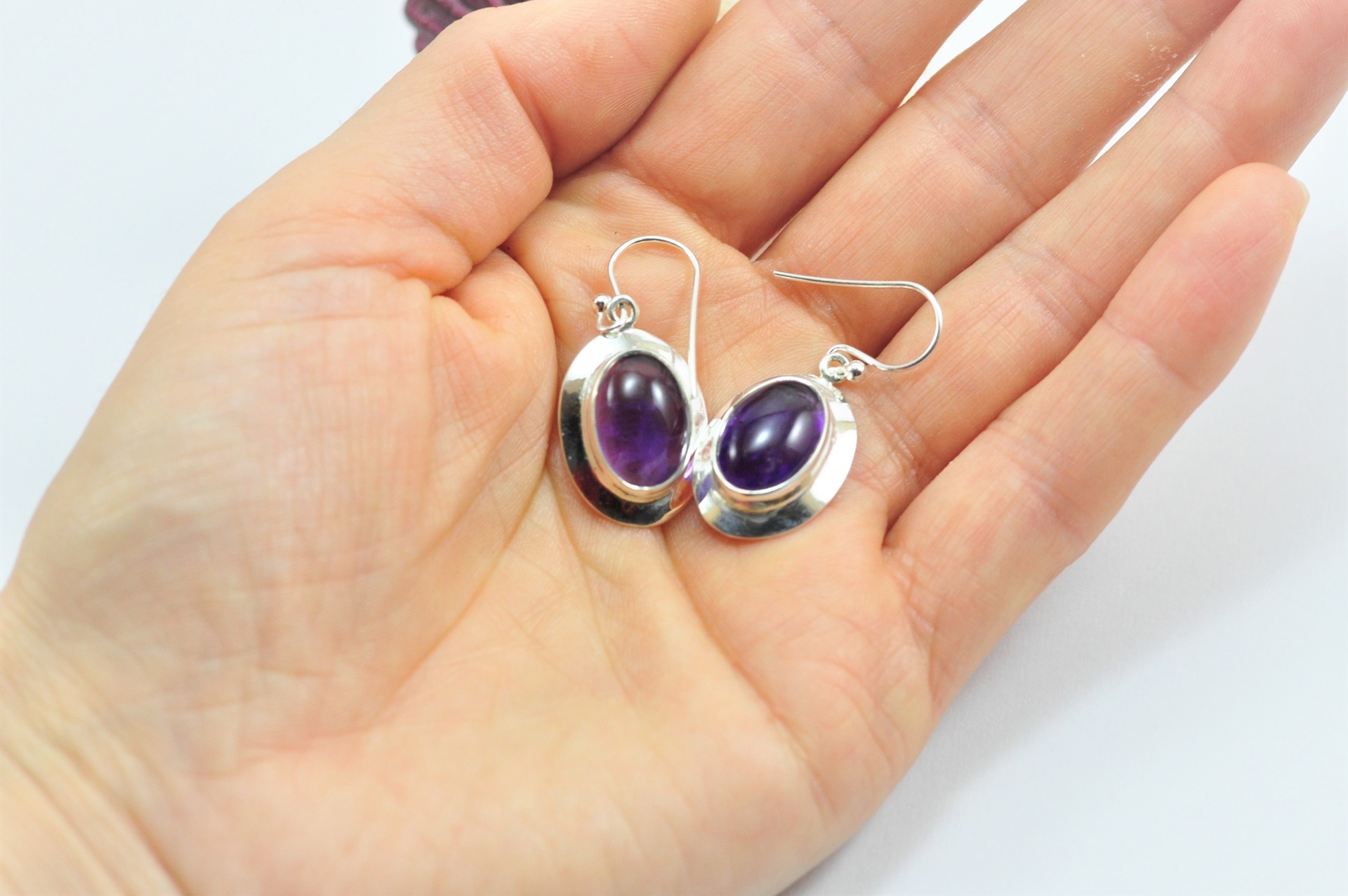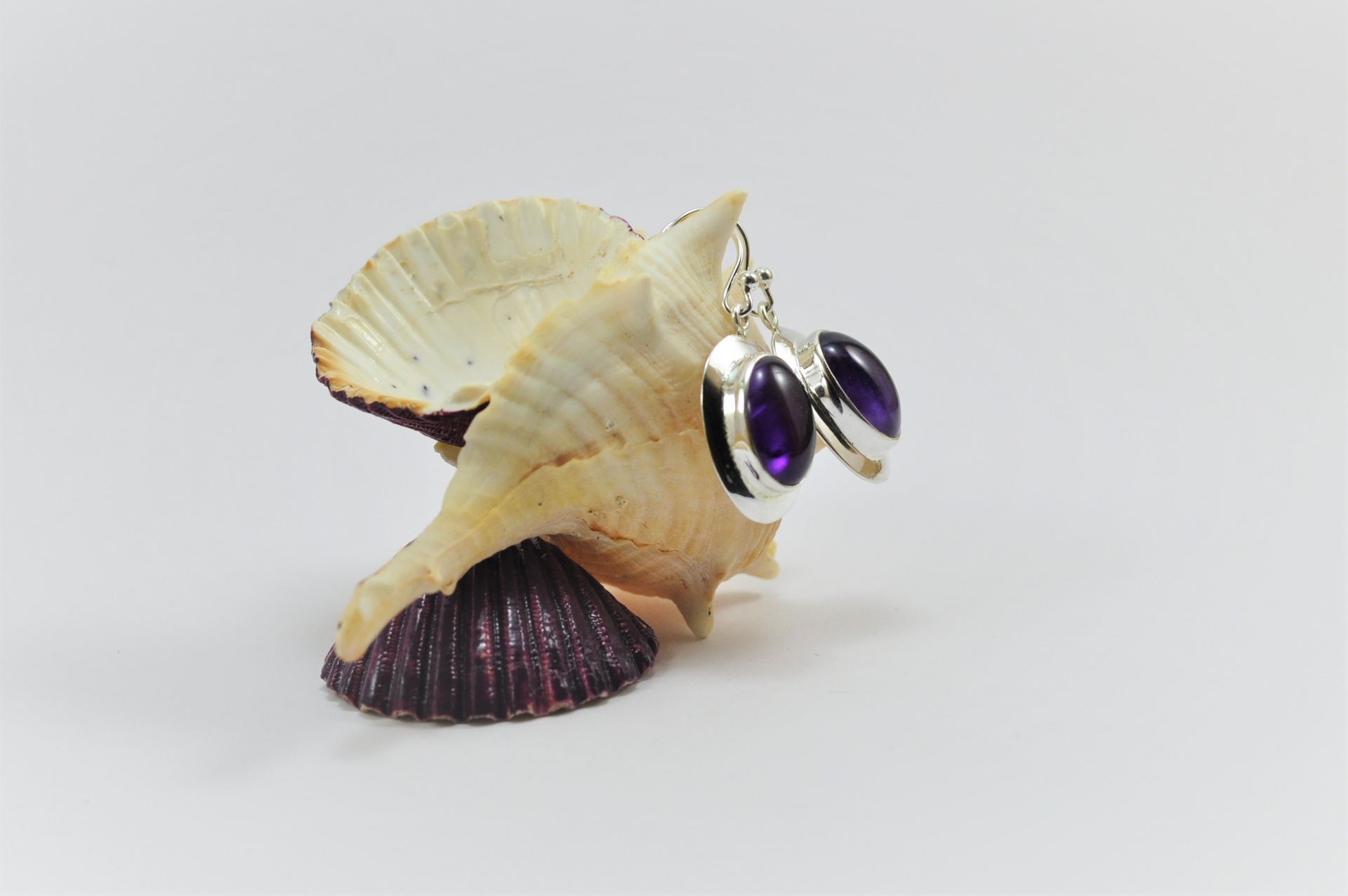 Brincos em formato Oval em Prata de Lei 925 com Ametista de Qualidade Extra!