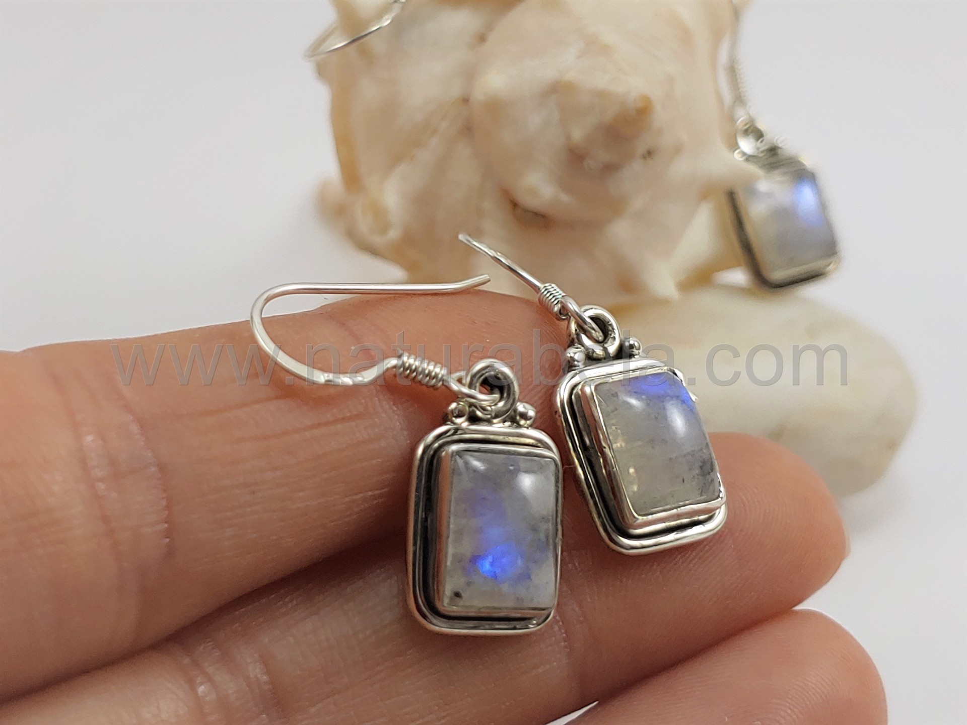 Brincos em Prata com Pedra da Lua quadrados