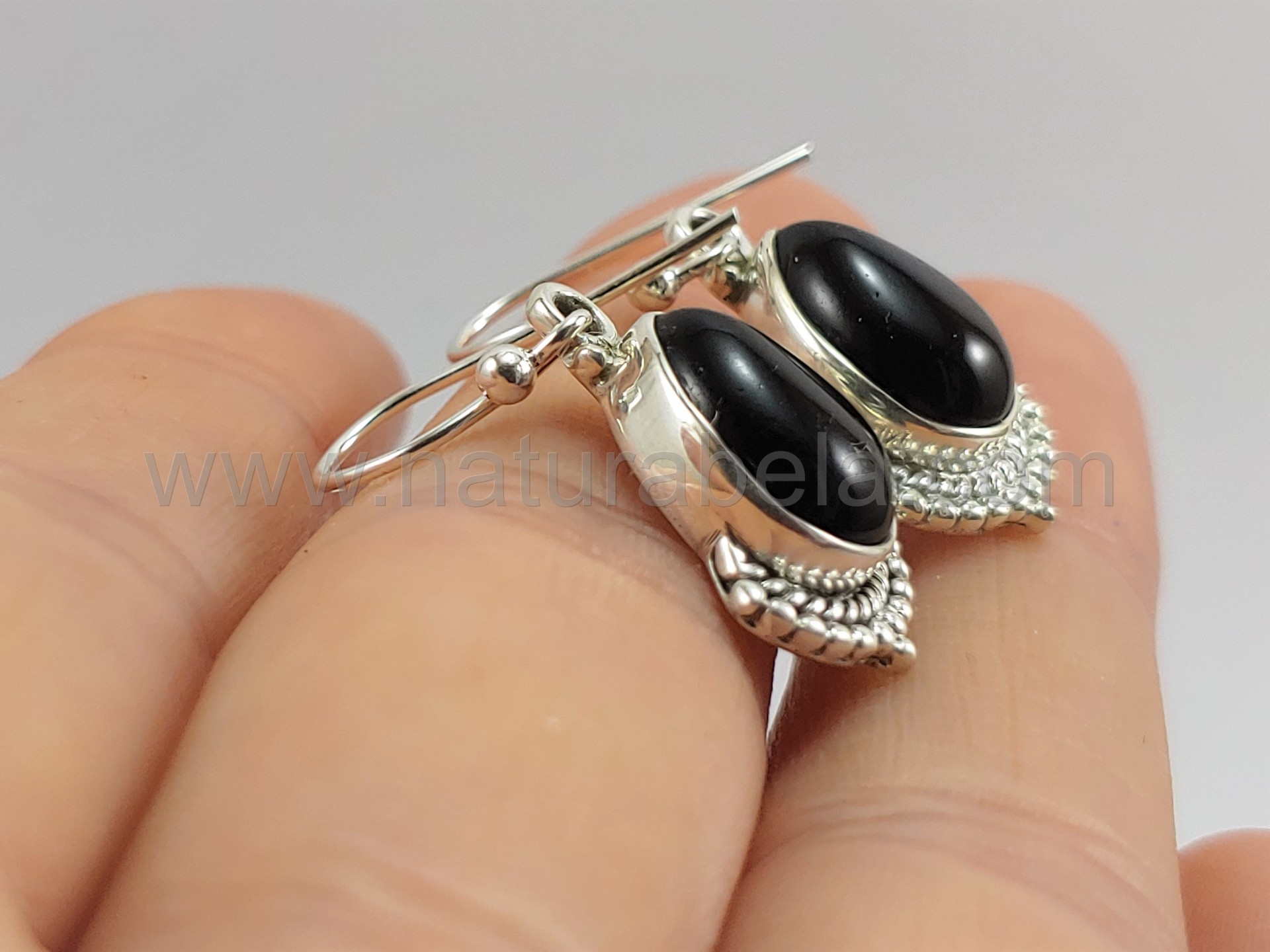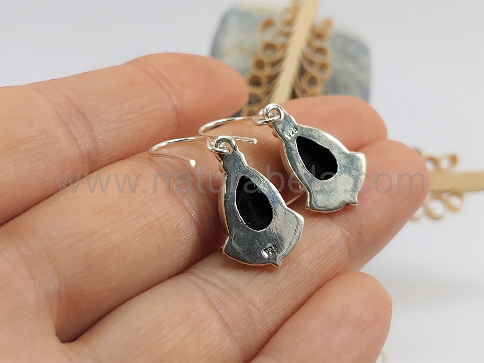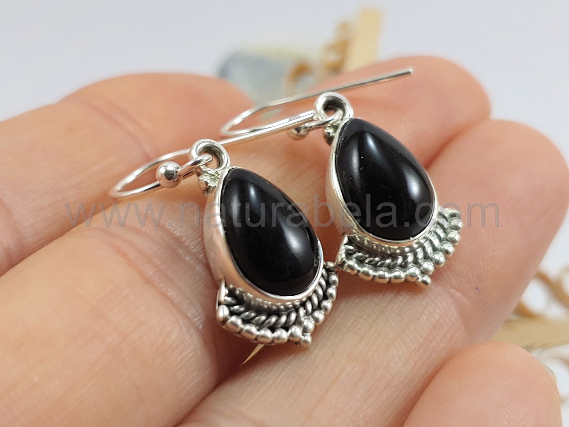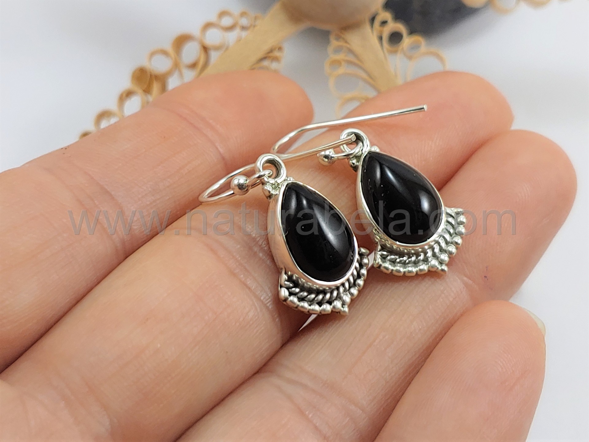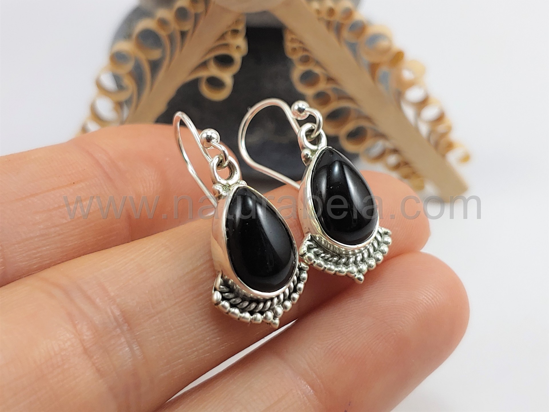 Brincos em prata de lei 925 com Pedra Ónix em formato lágrima. Modelo Vintage