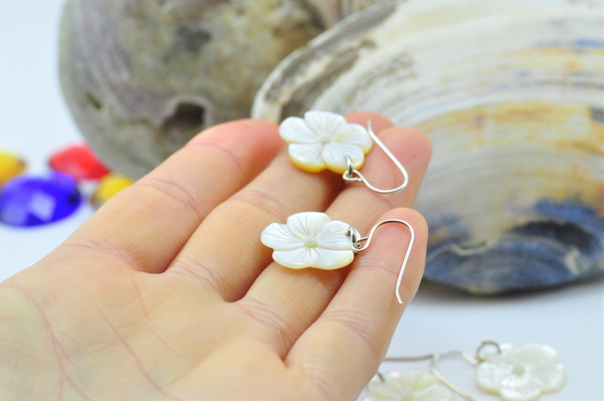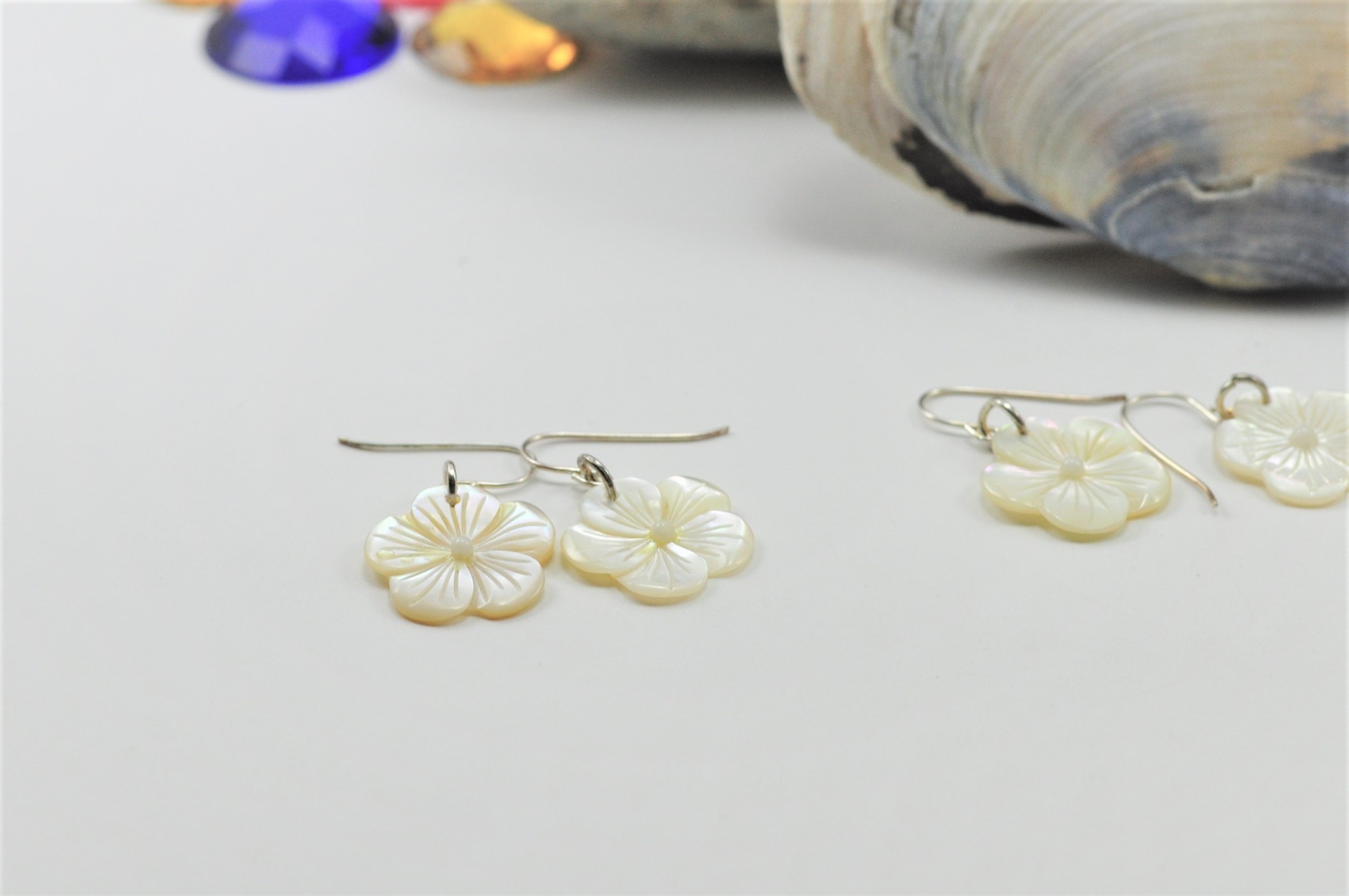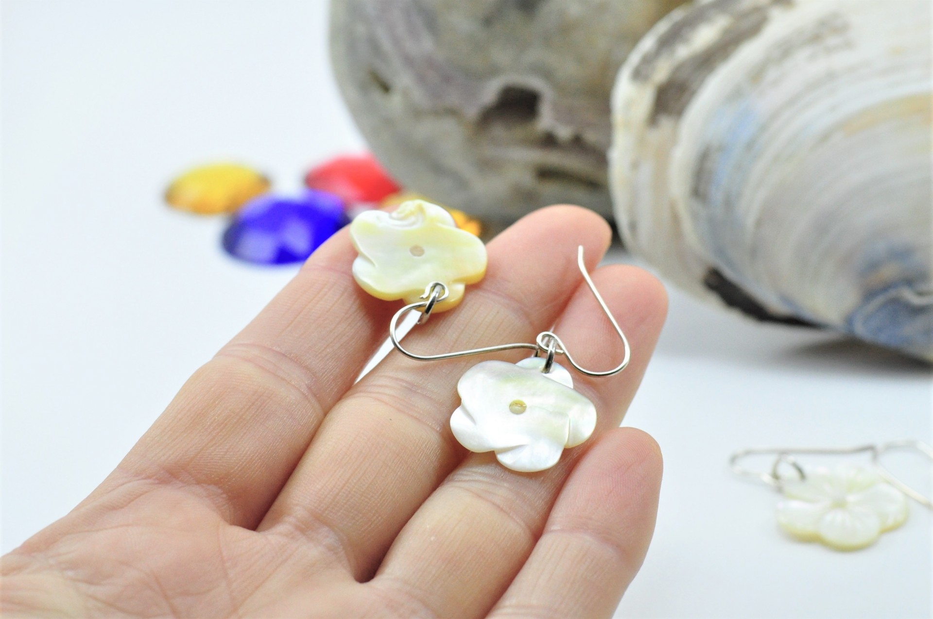 Brincos de Madrepérola "FLOR NÃO ME ESQUEÇAS" em PRATA