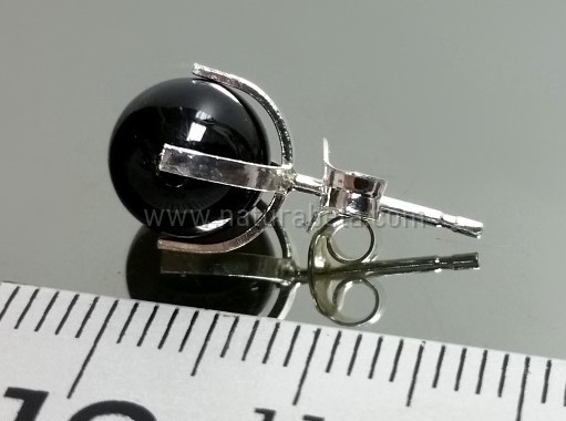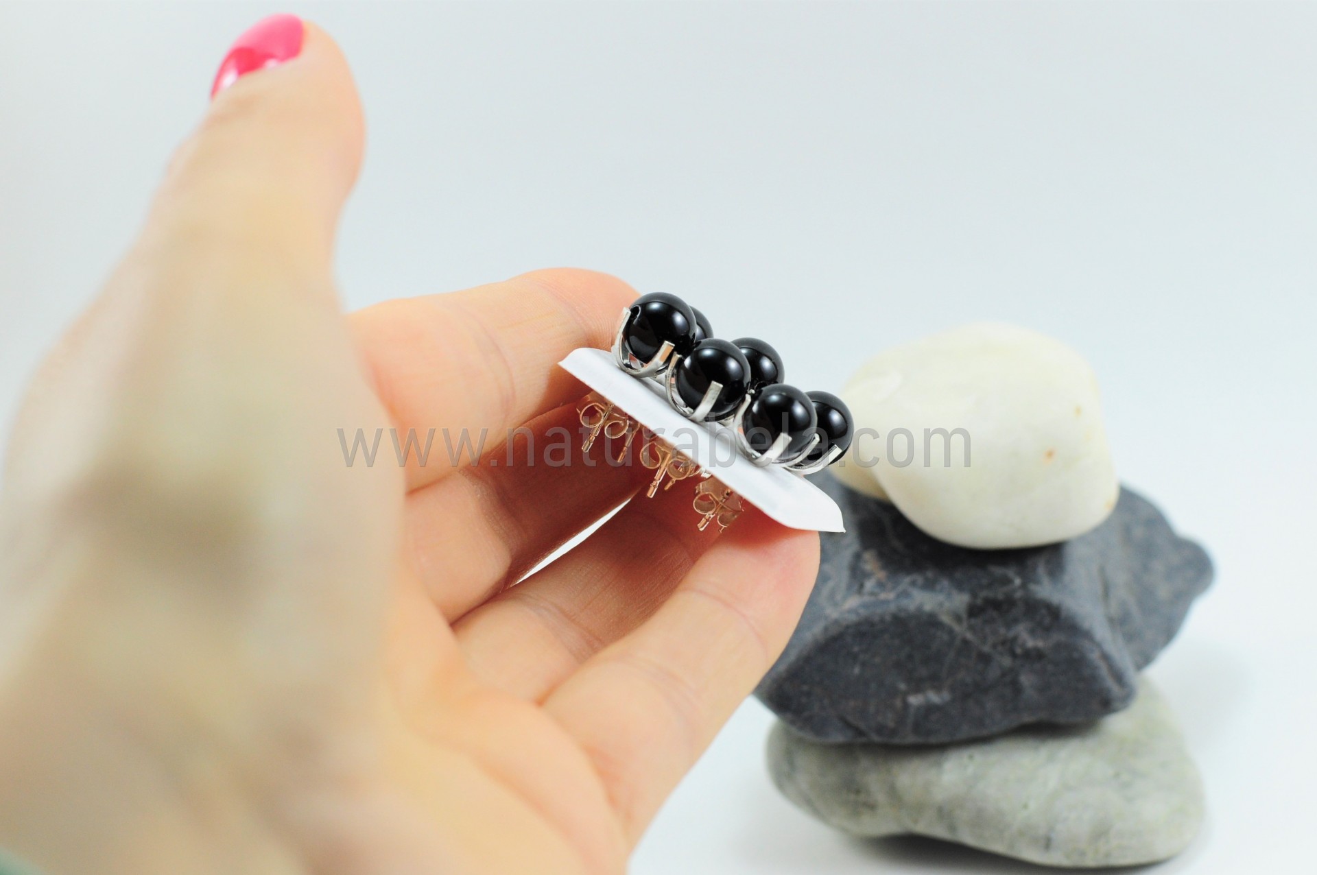 Brincos em prata com Bola 8mm de Turmalina Negra GARRA
