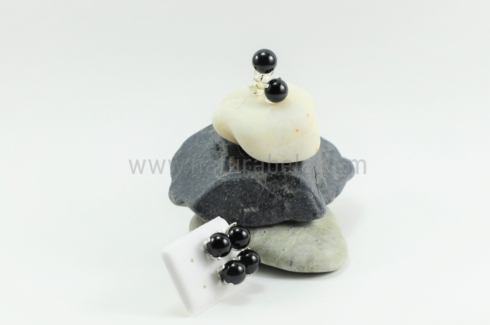 Brincos em prata de lei 925 com Bola de Turmalina Negra