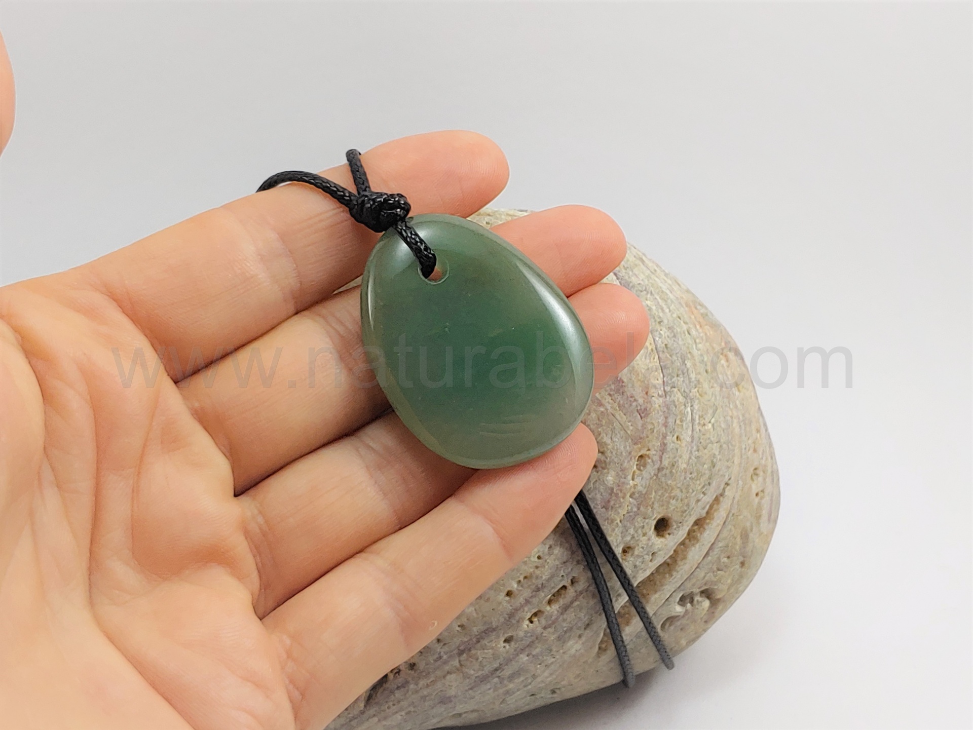 Este colar é em fio de nylon preto e é ajustável em tamanho através do sistema de nós corrediços. Contém uma linda pedra de Quartzo verde. Este tipo de colares são muito simples e práticos para usar no dia a dia. Pode ser usado quer por homens ou mulheres.