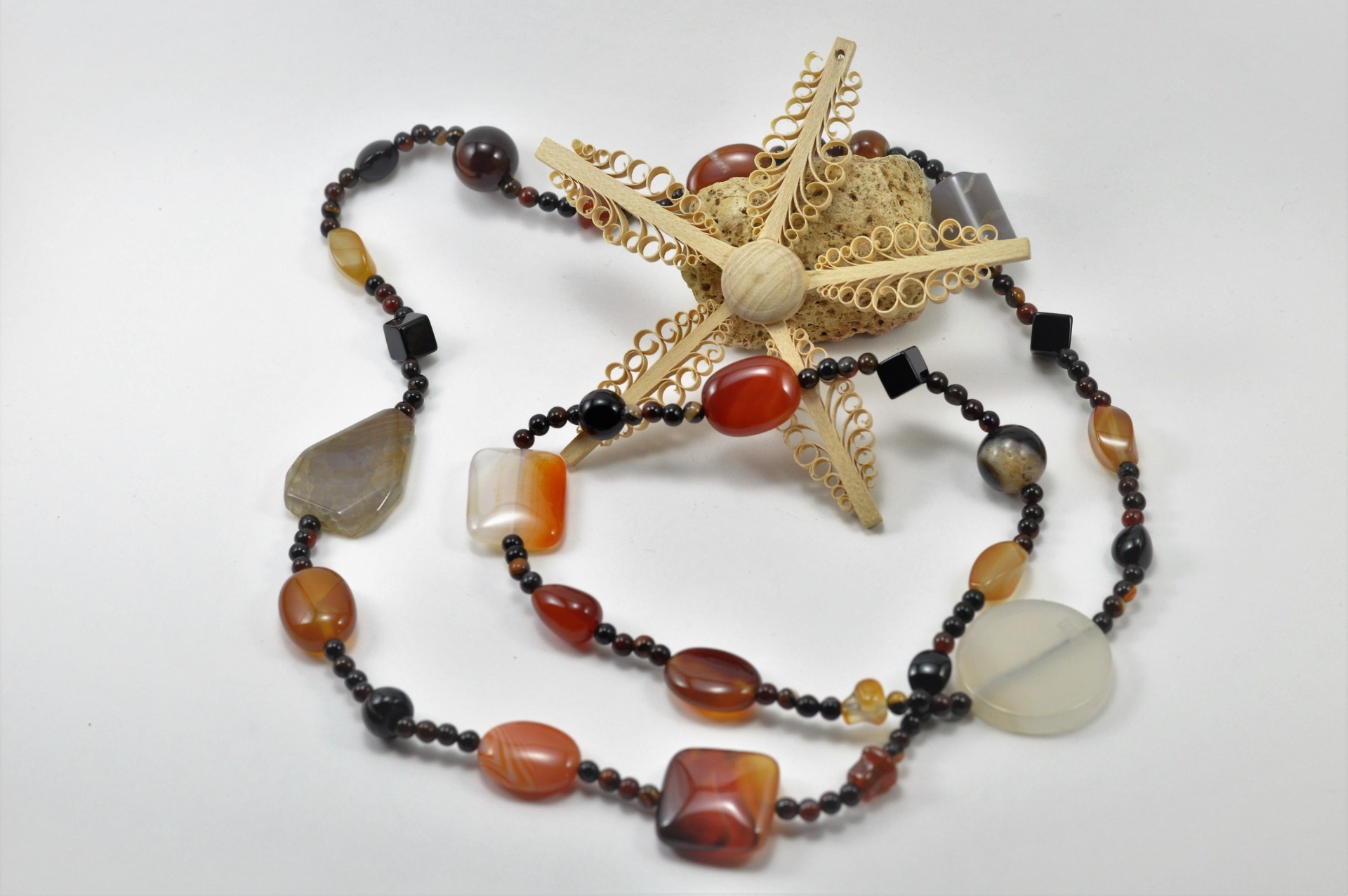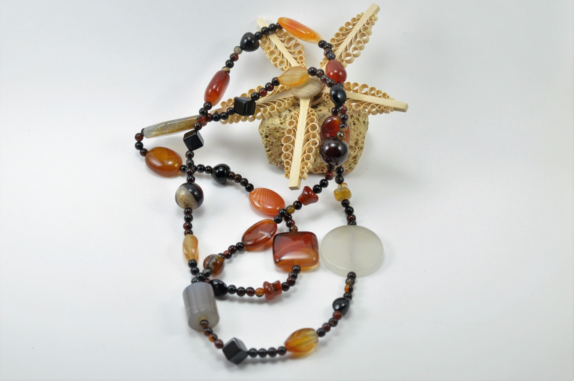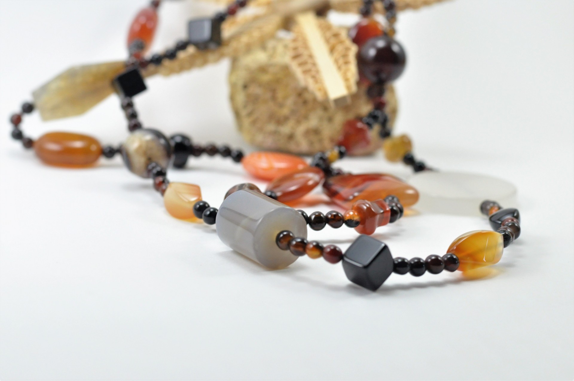 Colar comprido de pedras naturais de Ágata com contas de diferentes formas!