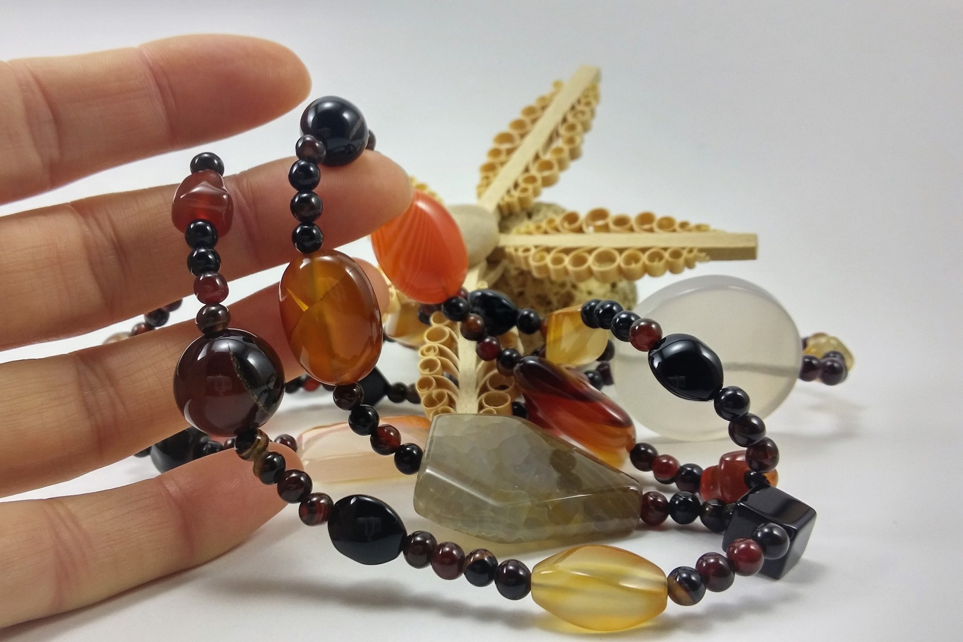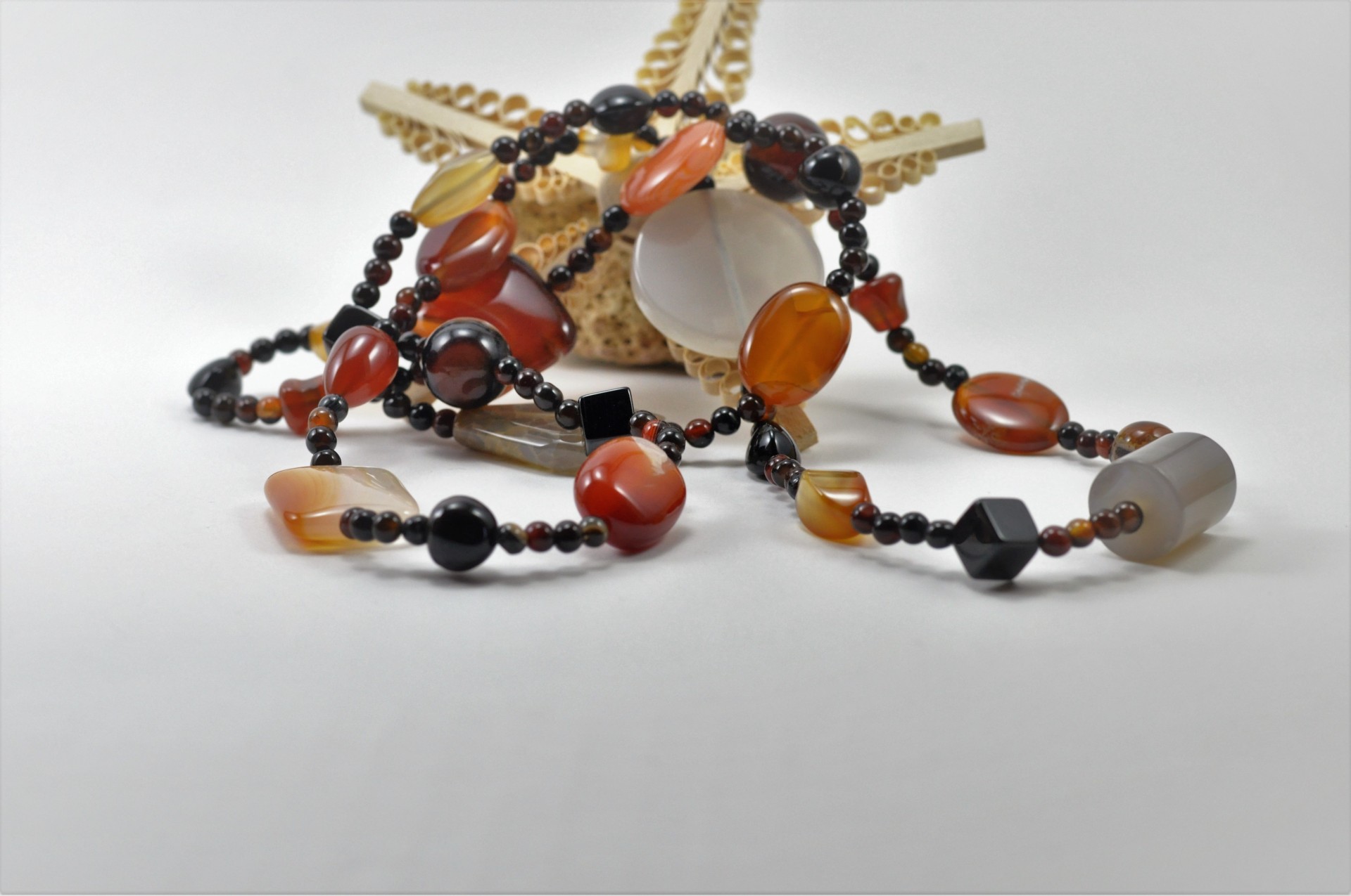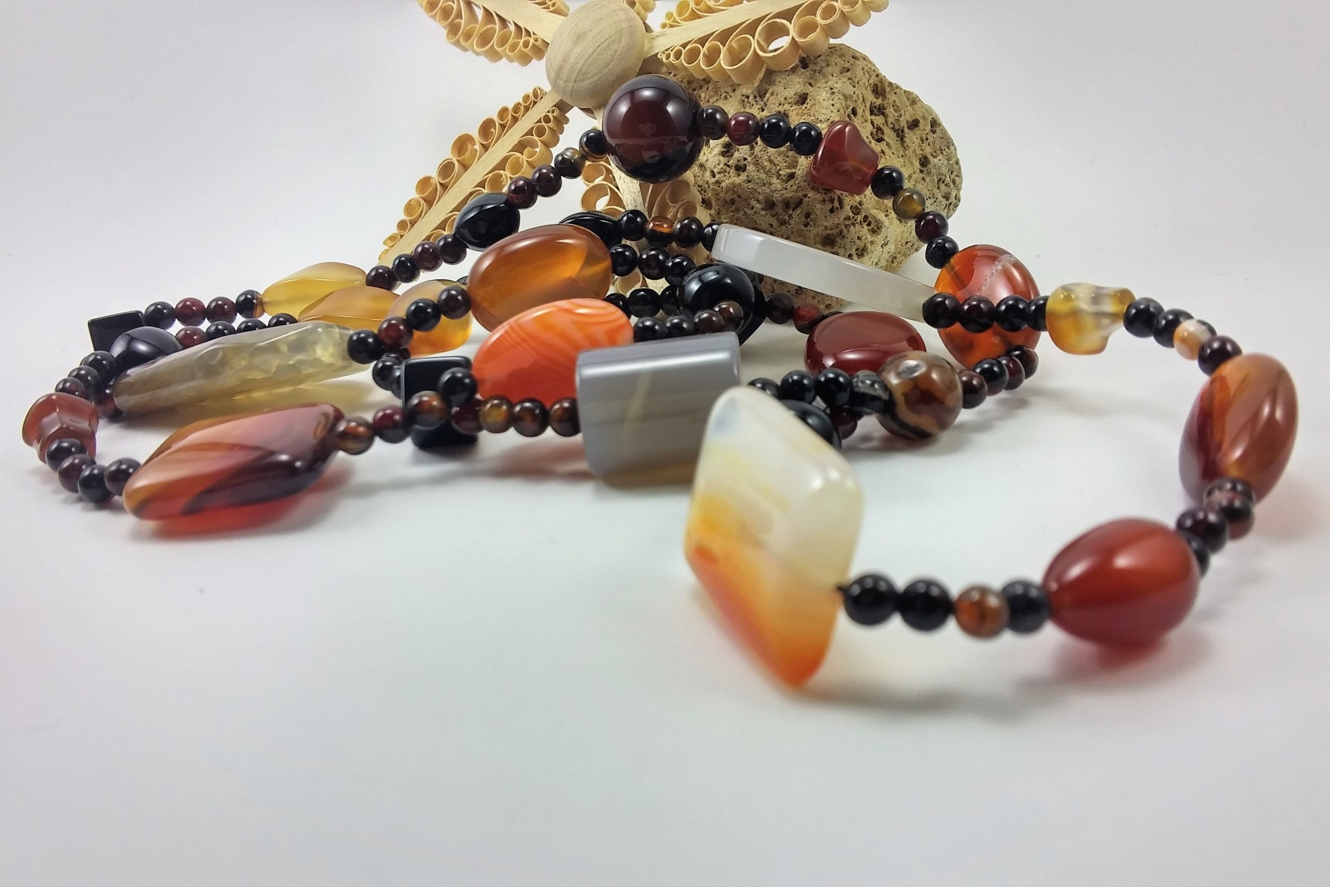 Colar comprido de pedras naturais de Ágata com contas de diferentes formas!