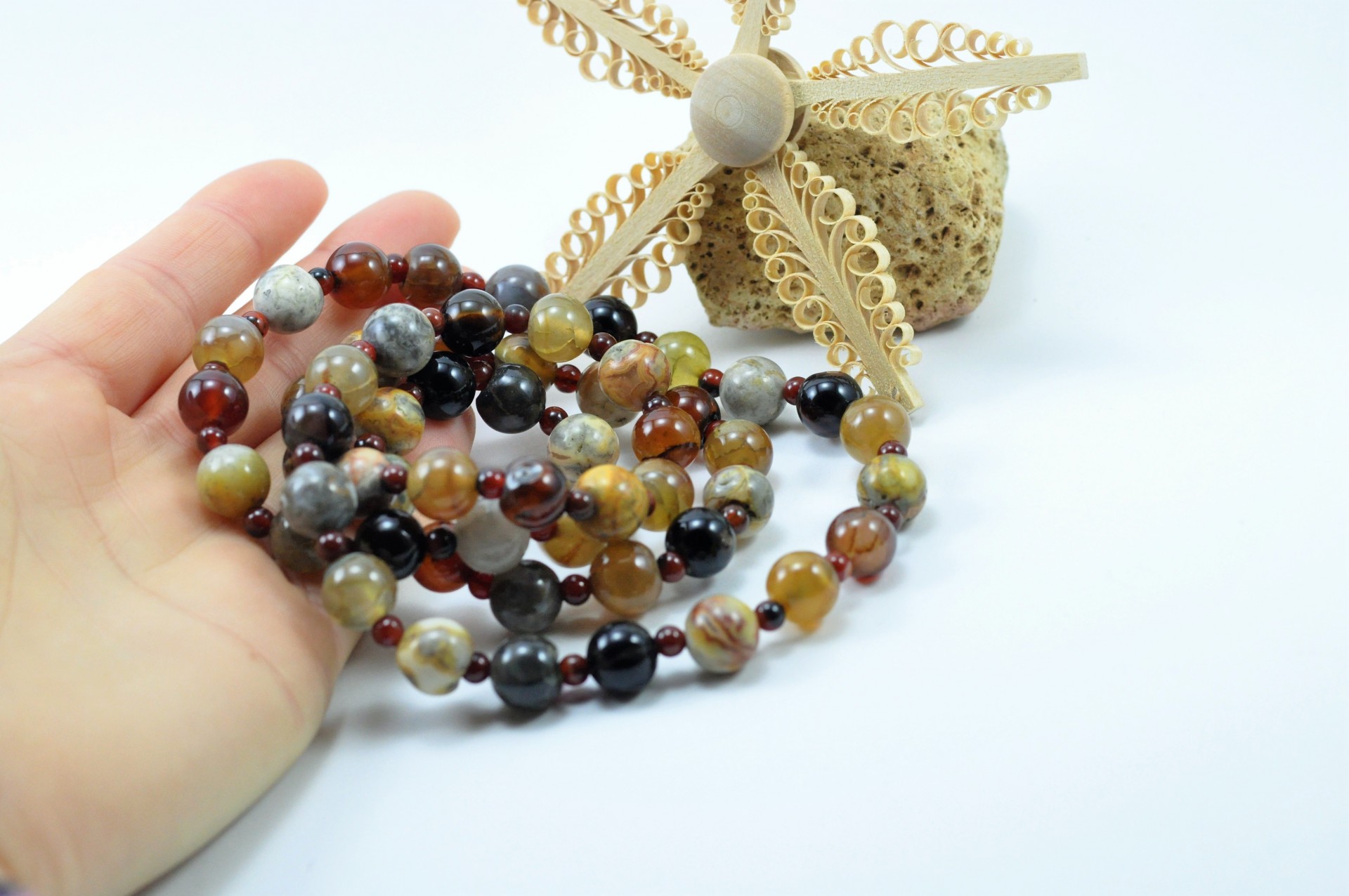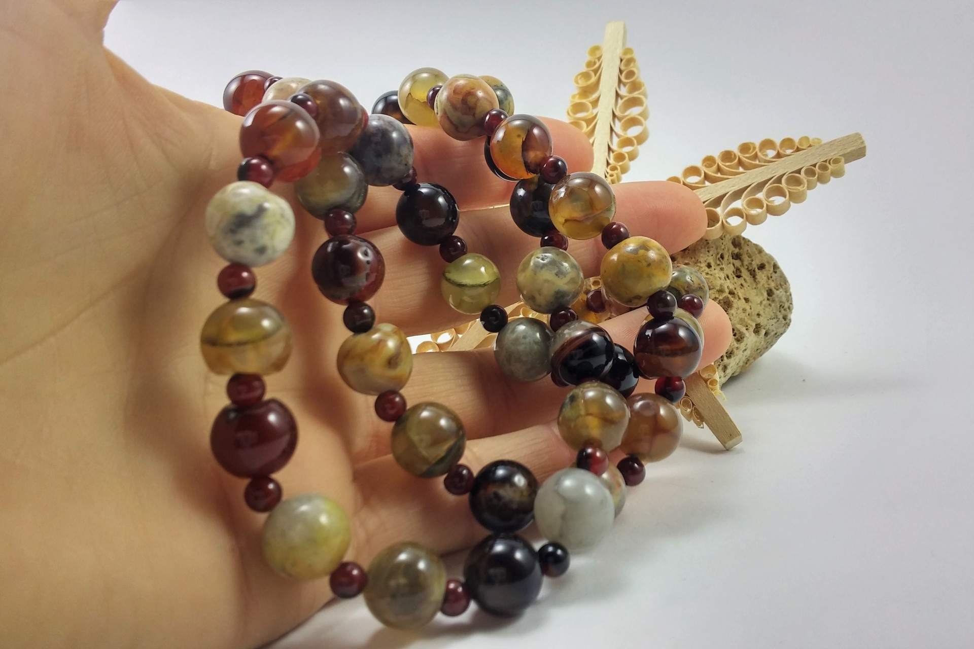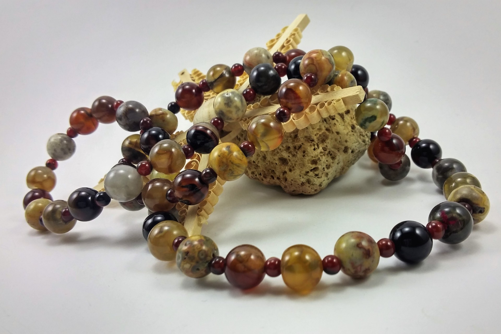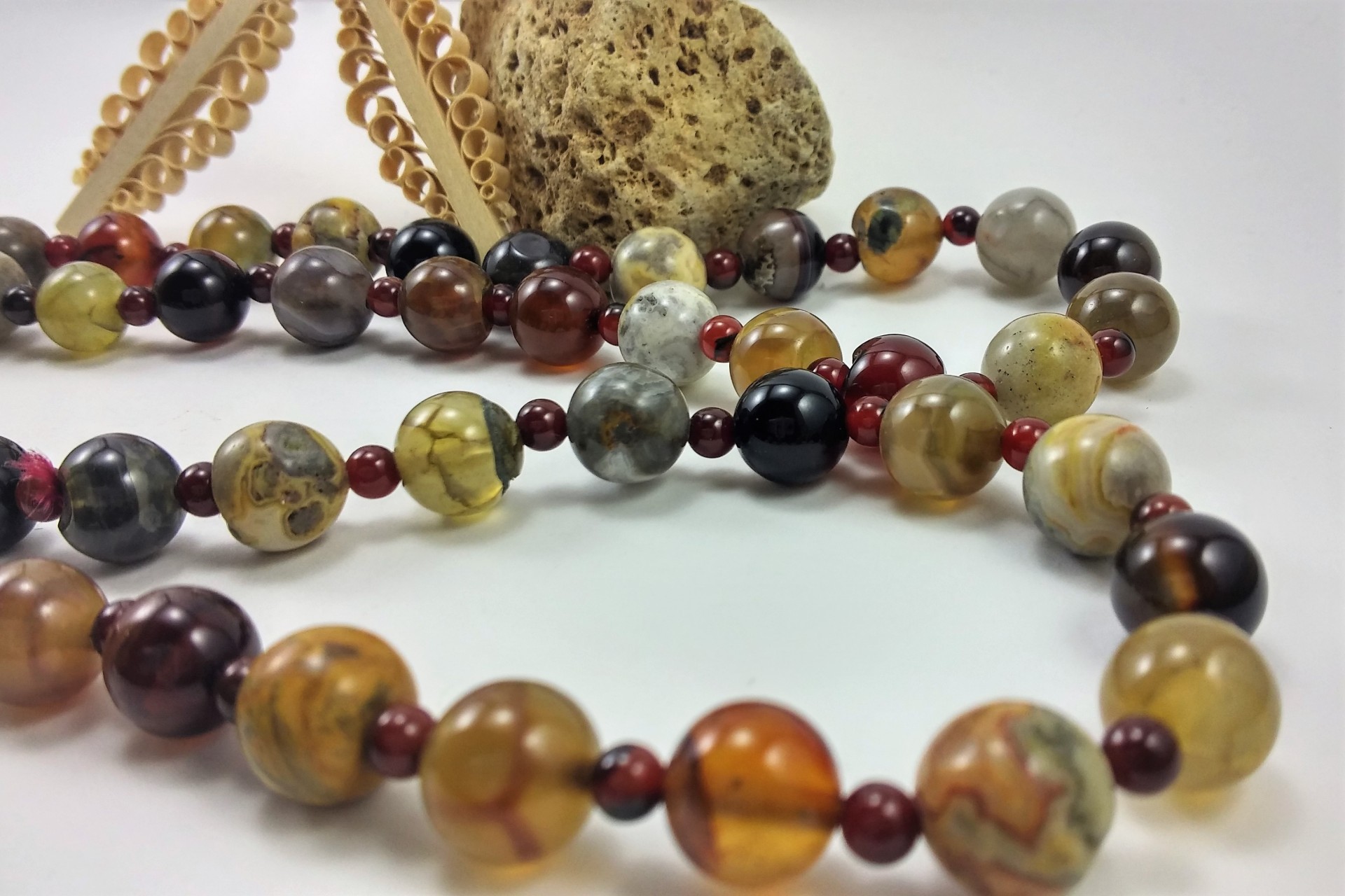 Colar comprido Rústico de Ágata e Jaspe
