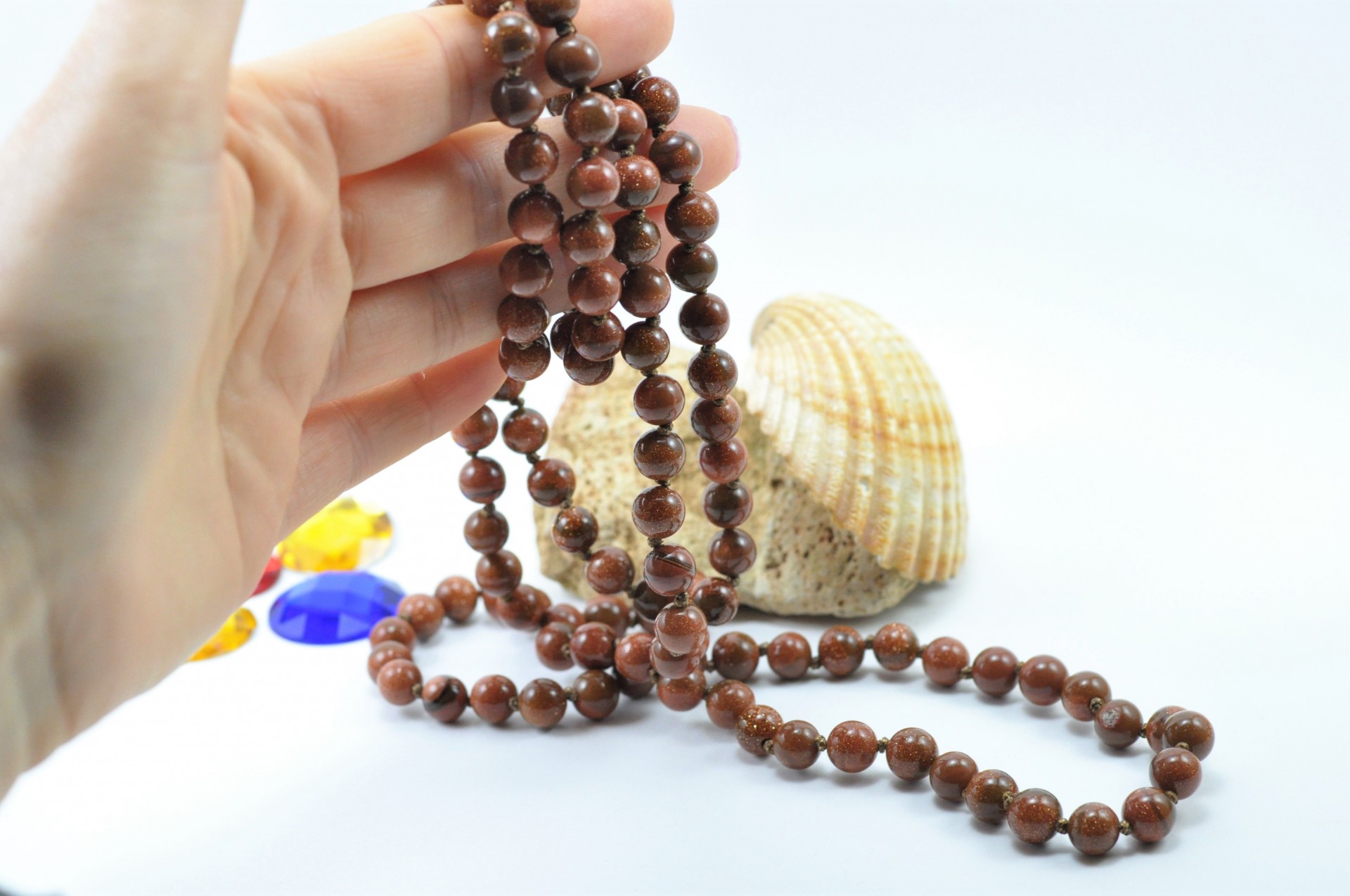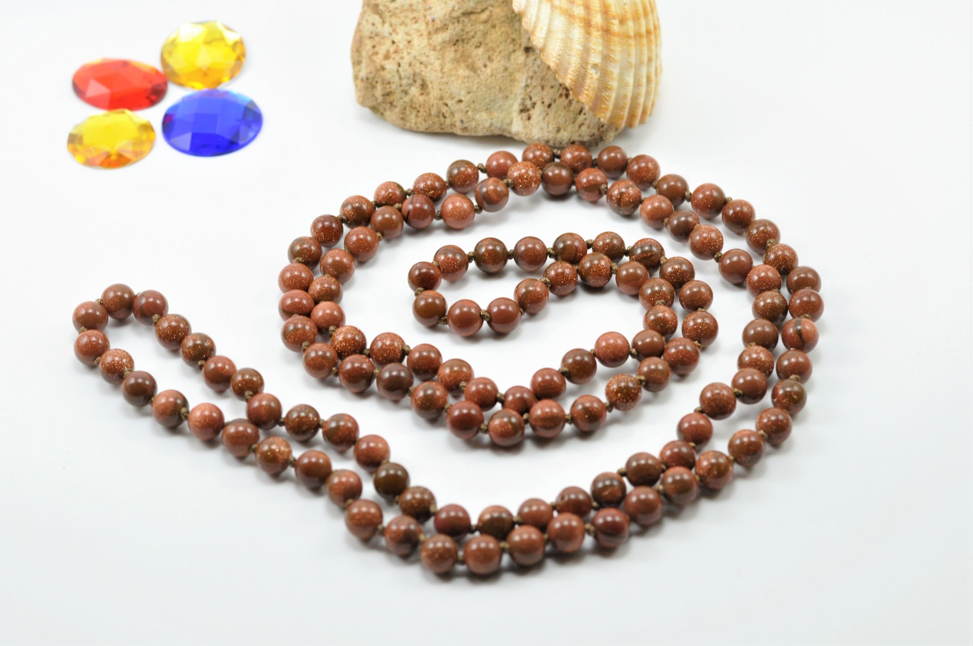 Colar comprido de bolas de pedra sol/ouro!