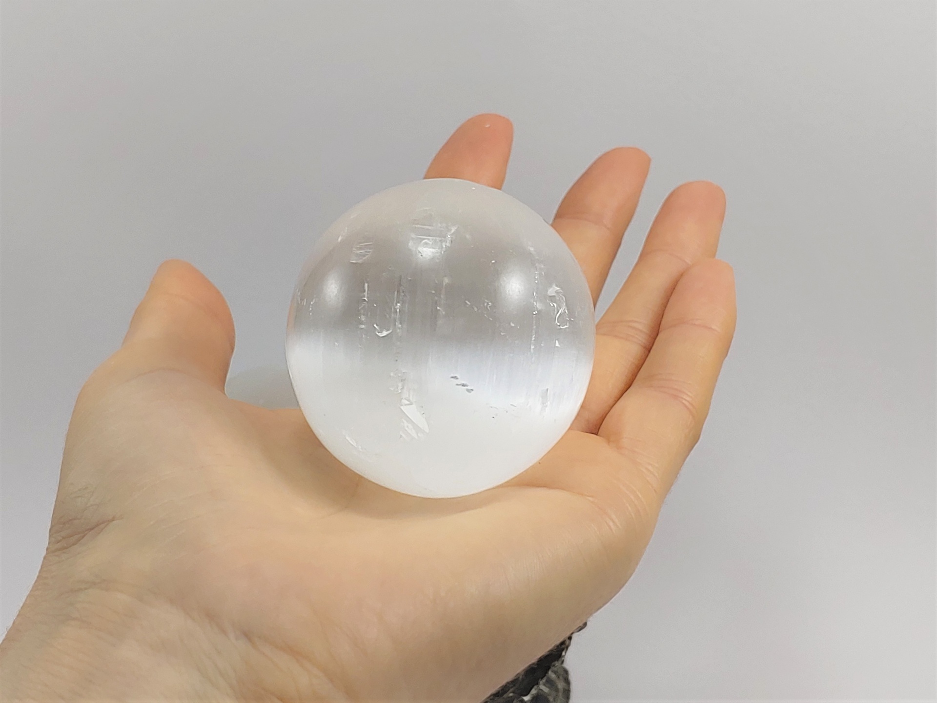 A Selenita é um mineral poderoso de contacto espiritual. Ajuda na meditação, favorece a telepatia. Estas bolas transmitem as energias por todos os lados de forma igual. Energizam ambientes. Equilibra os Chakras.