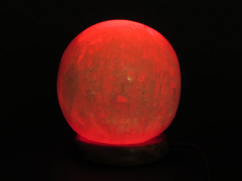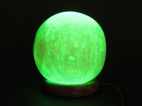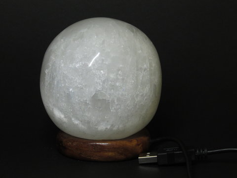 Esfera de SELENITE c/ base em madeira com ligação USB.