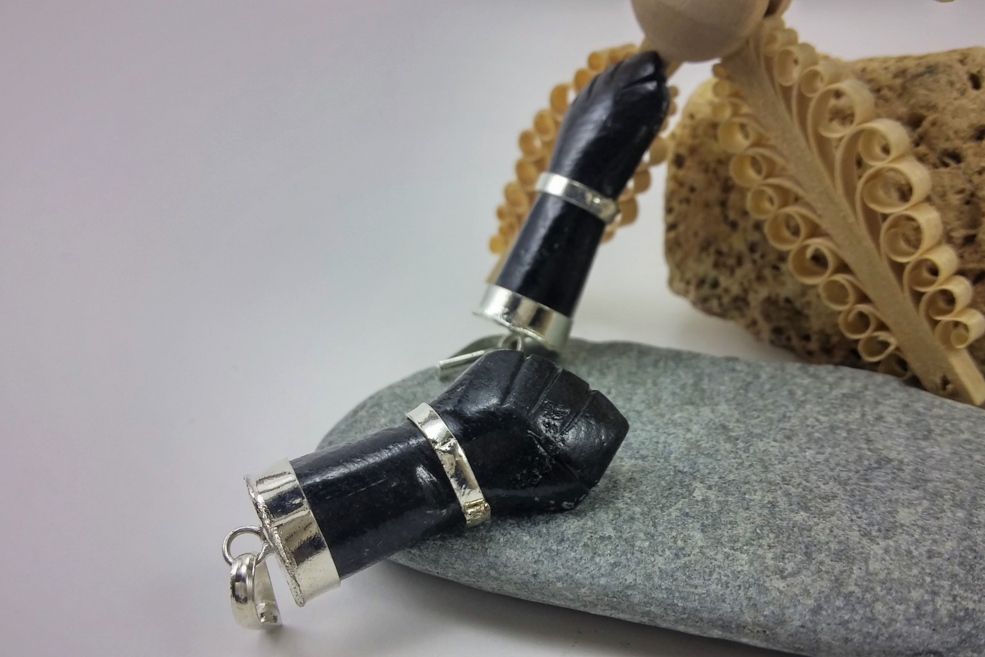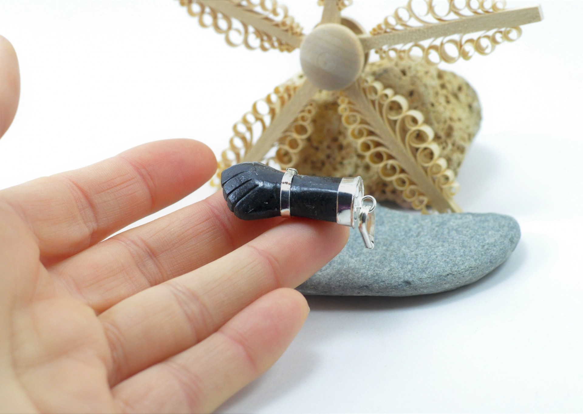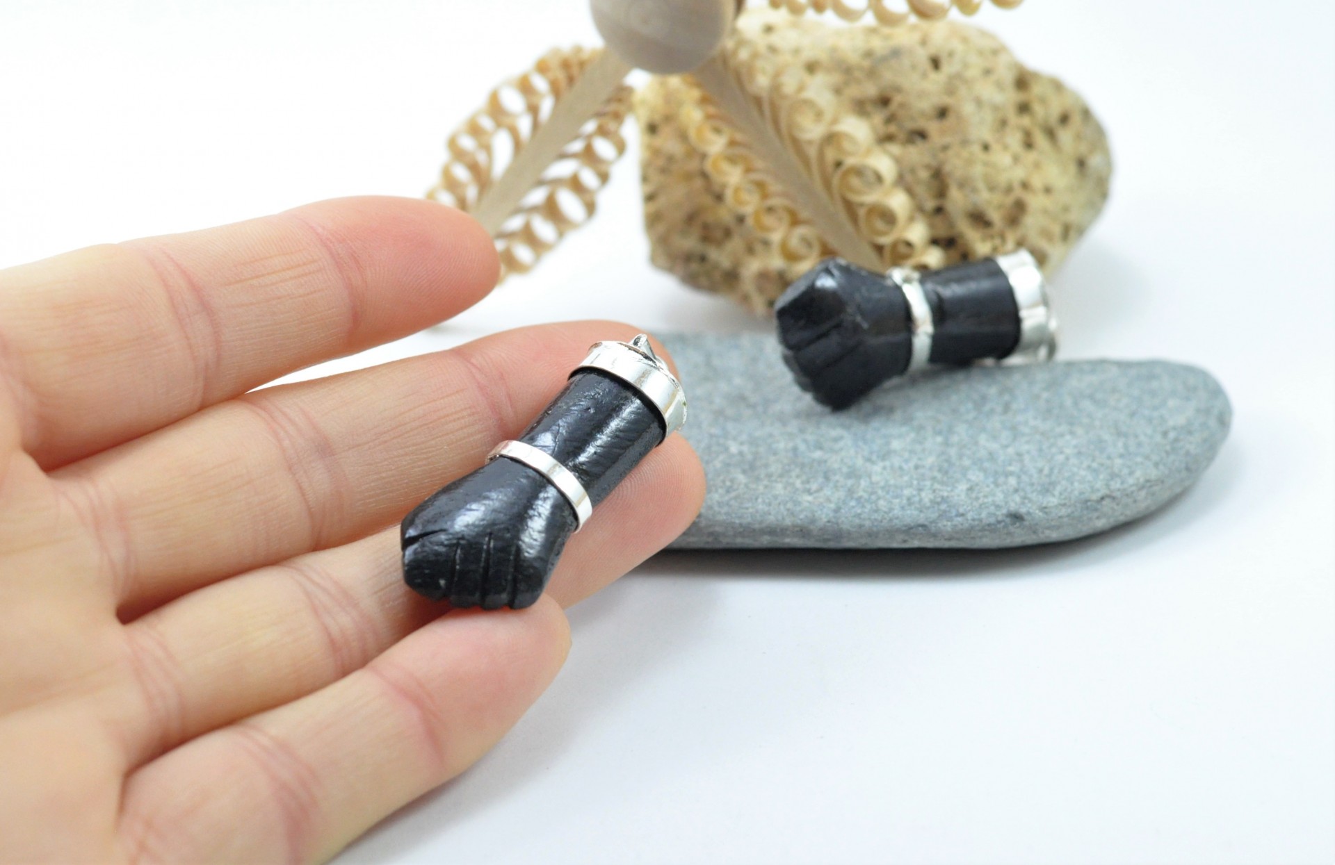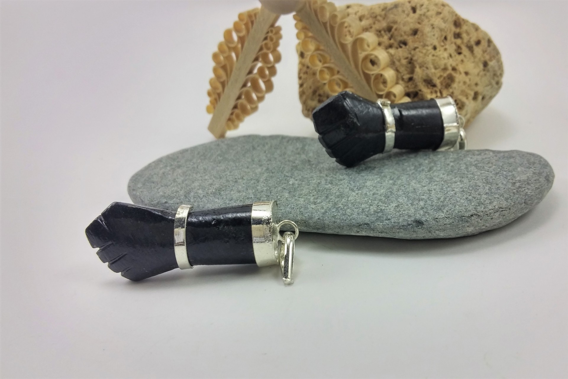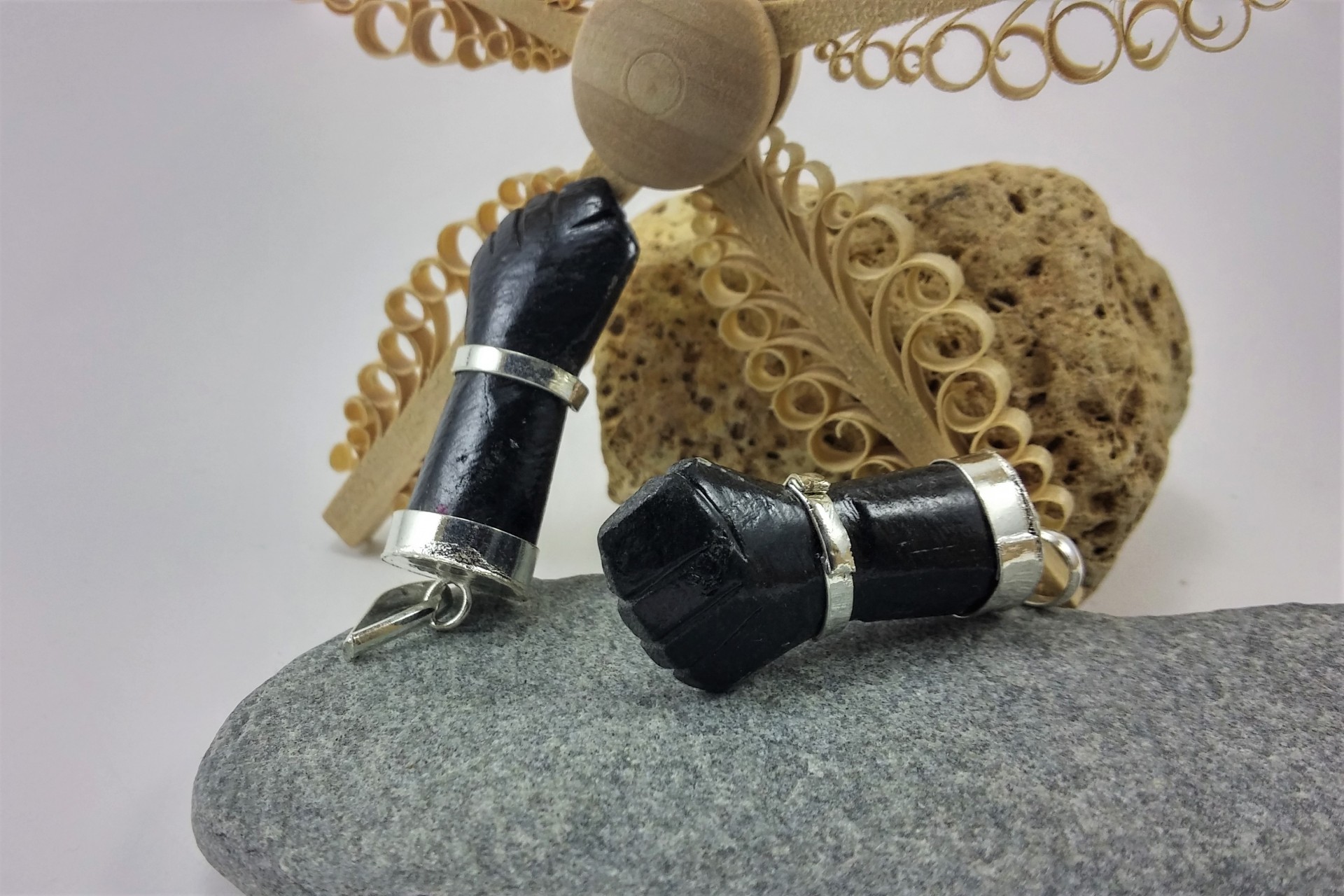 Figa grande de Turmalina Negra com banho de prata!
