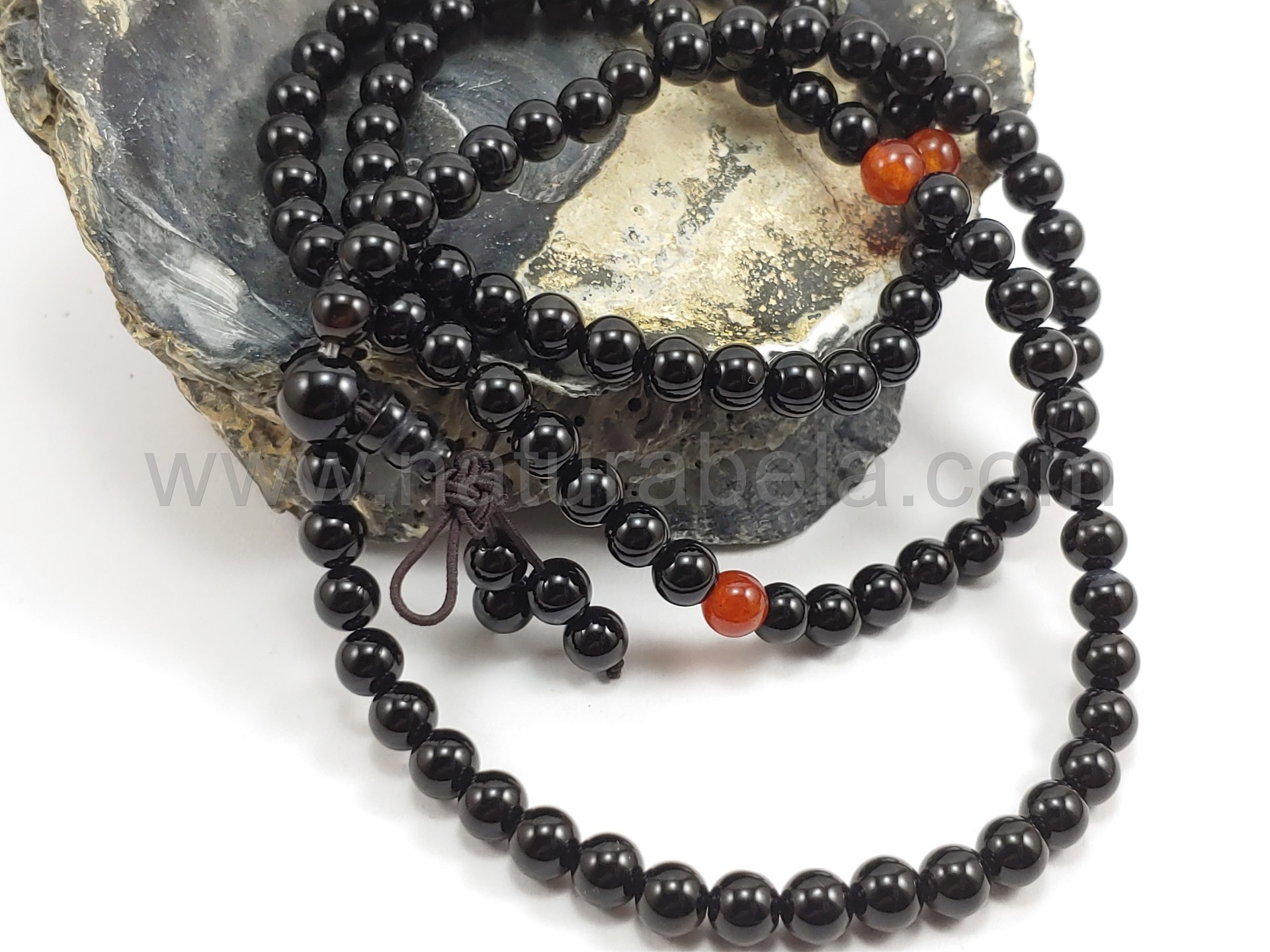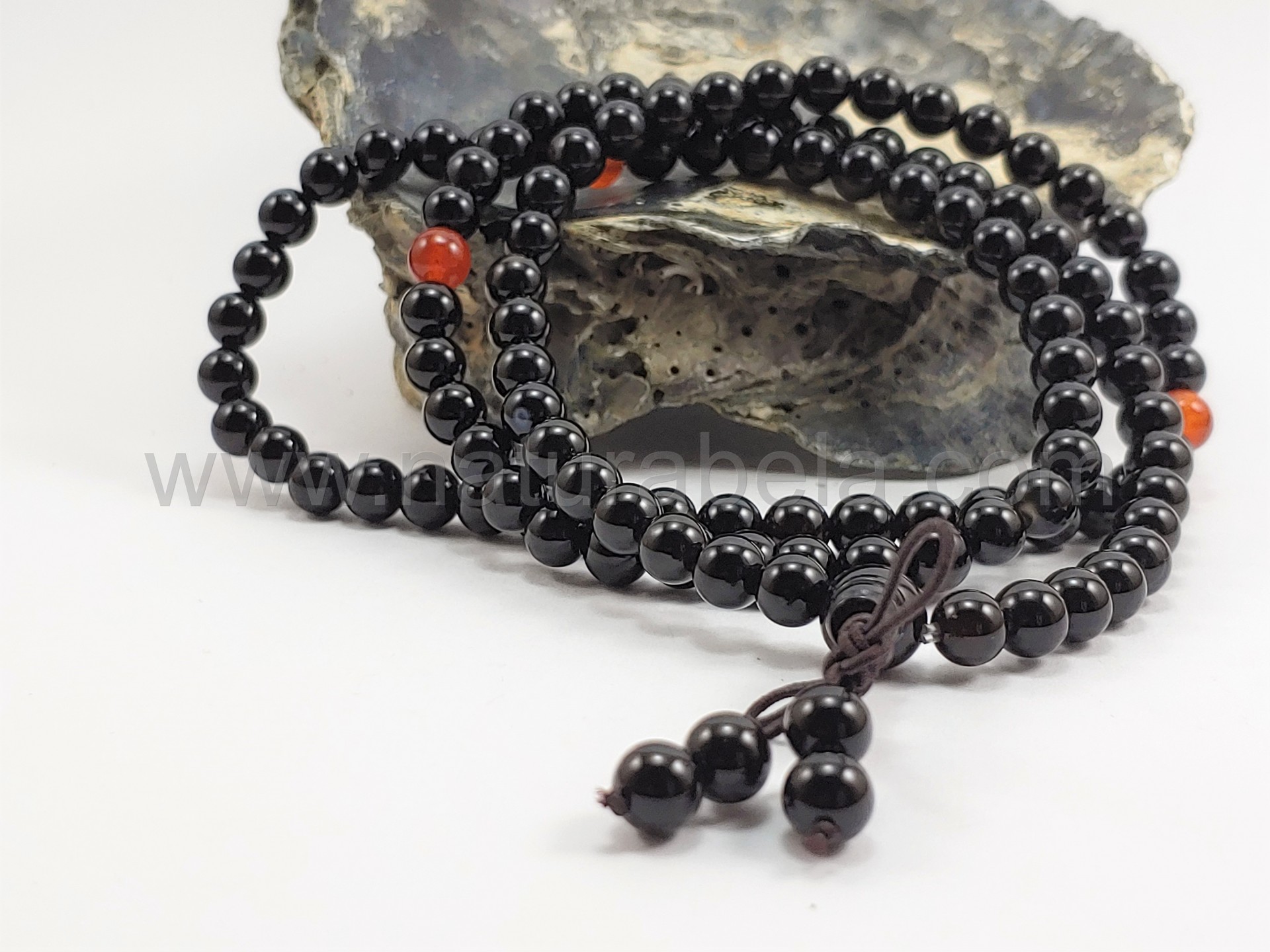 JapaMala de Ágata negra e Cornalina com bolas de 6mm