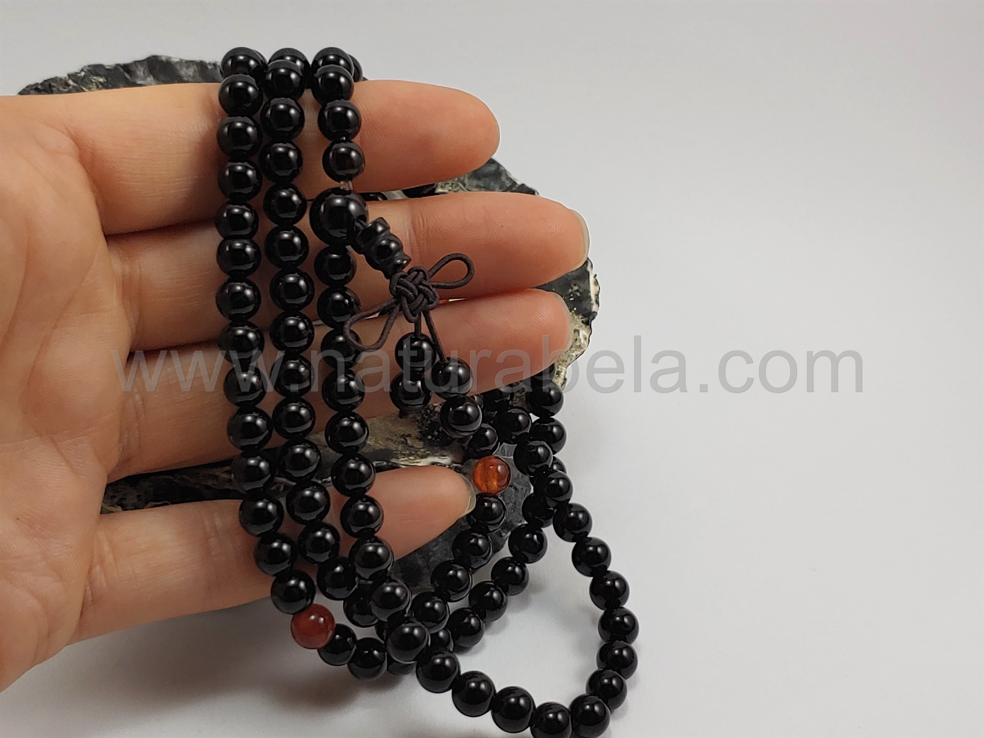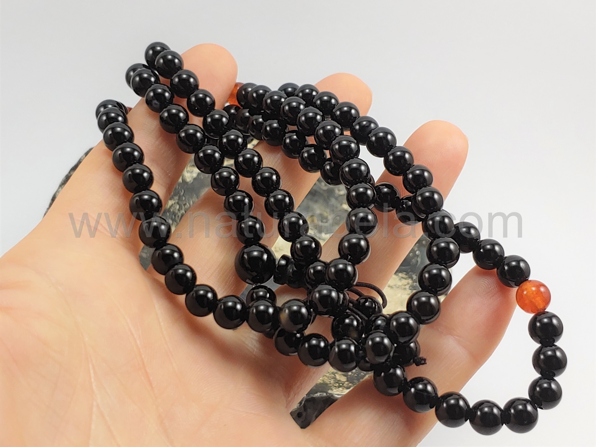 Japamala artesanal elástico de silicone com 108 contas de 6mm de Ágata negra em Pedra natural. Pode ser colocado a fazer de pulseira pois é elástico.