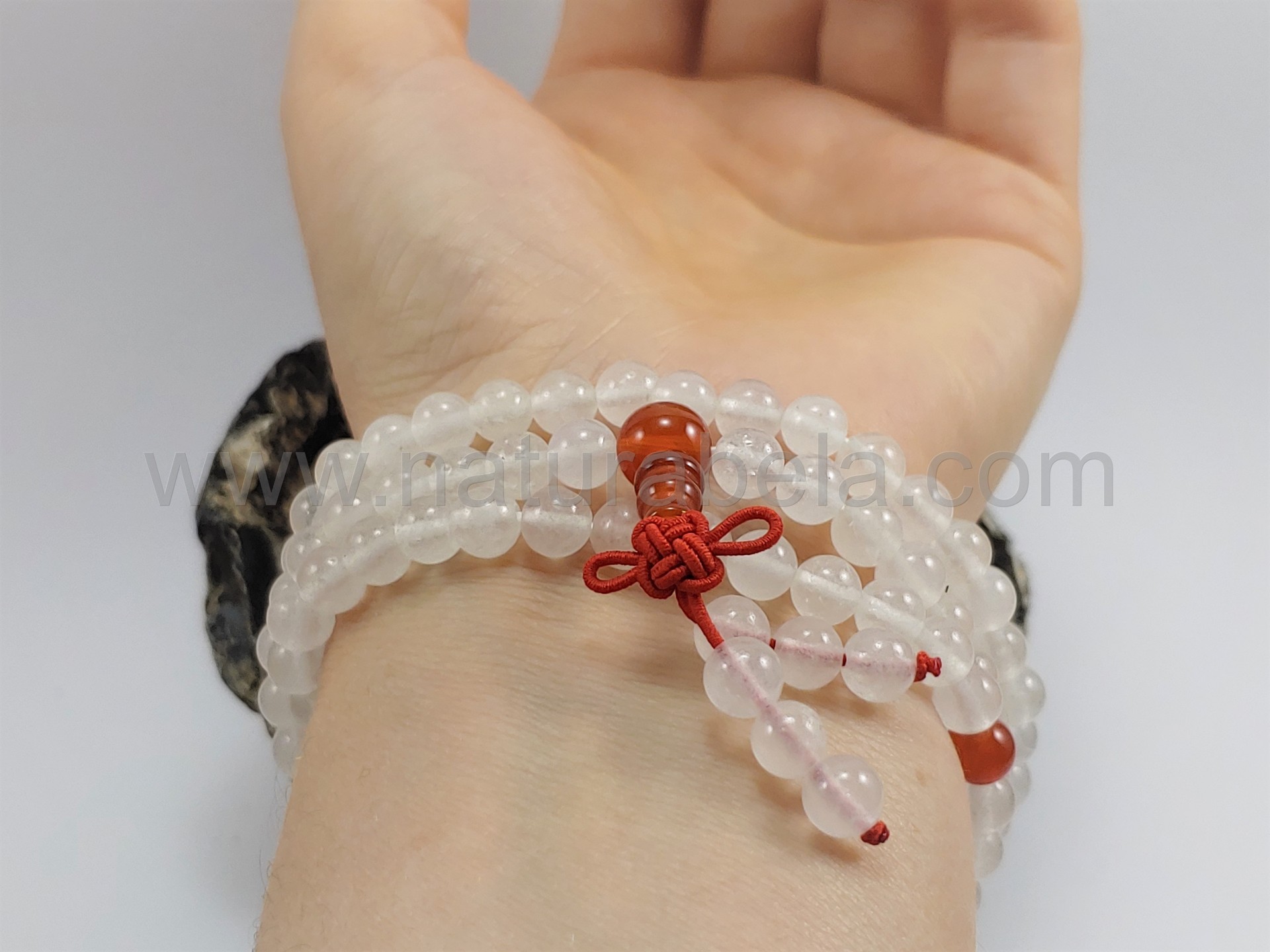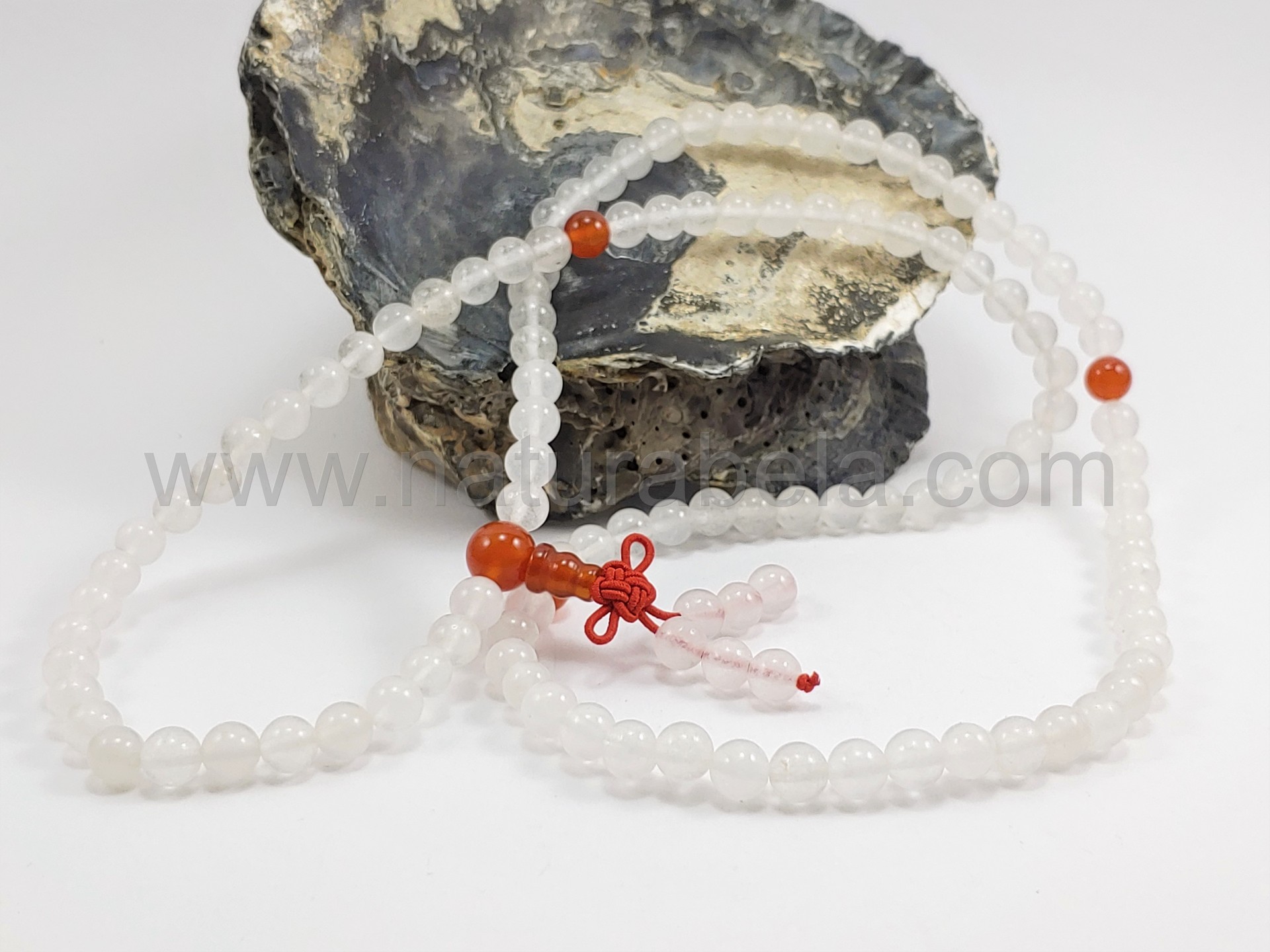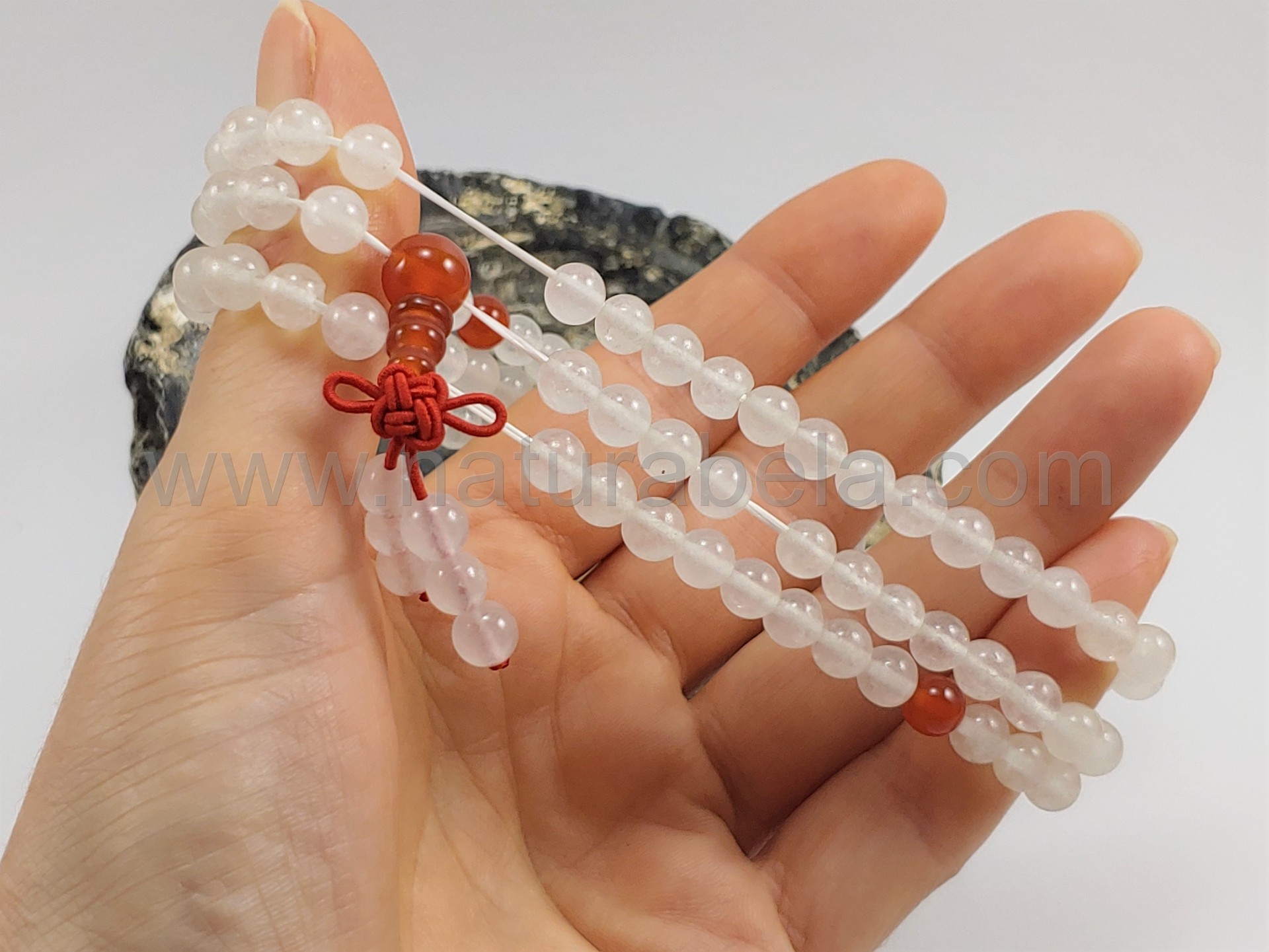 JapaMala de Jade branco e Cornalina com bolas de 6mm