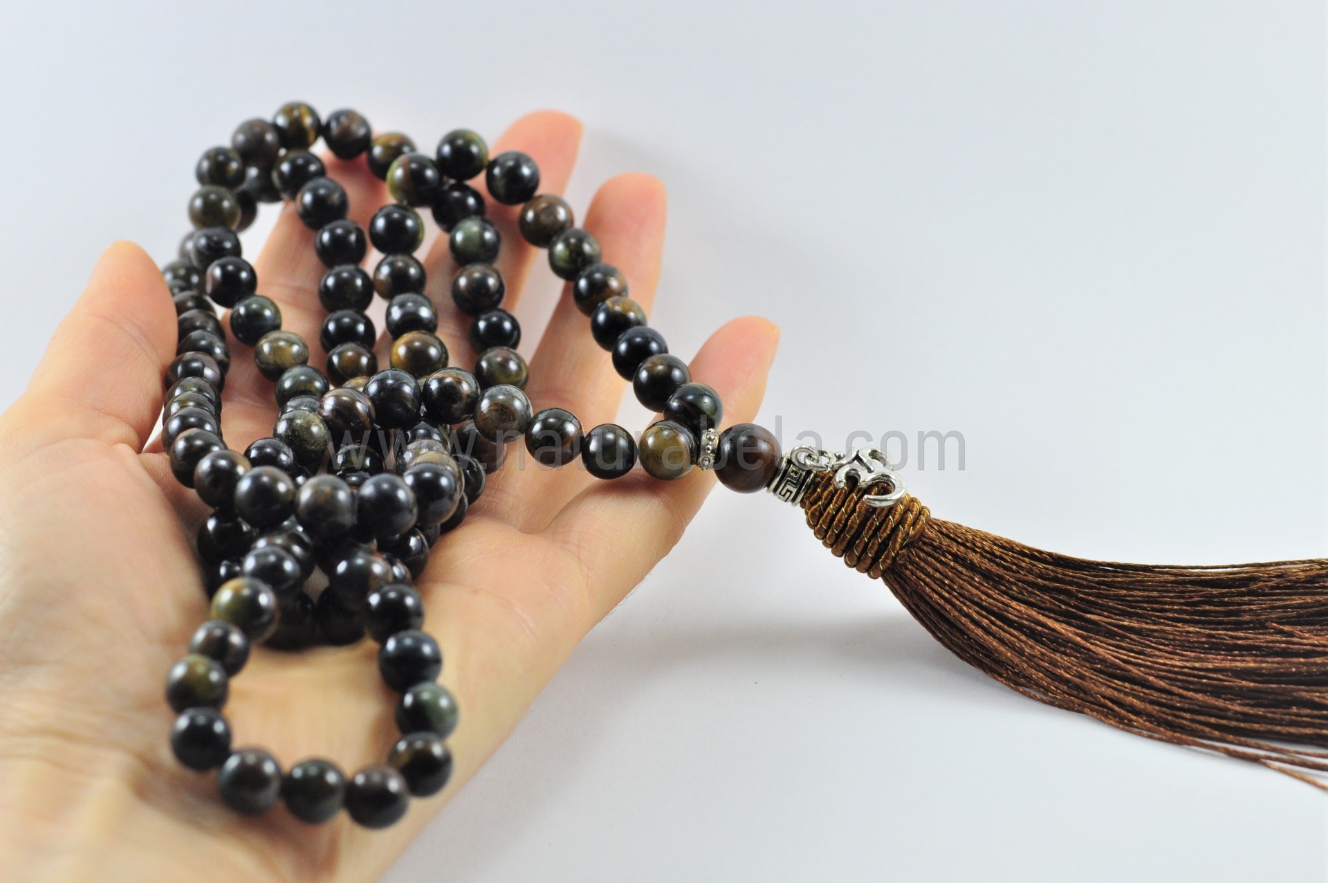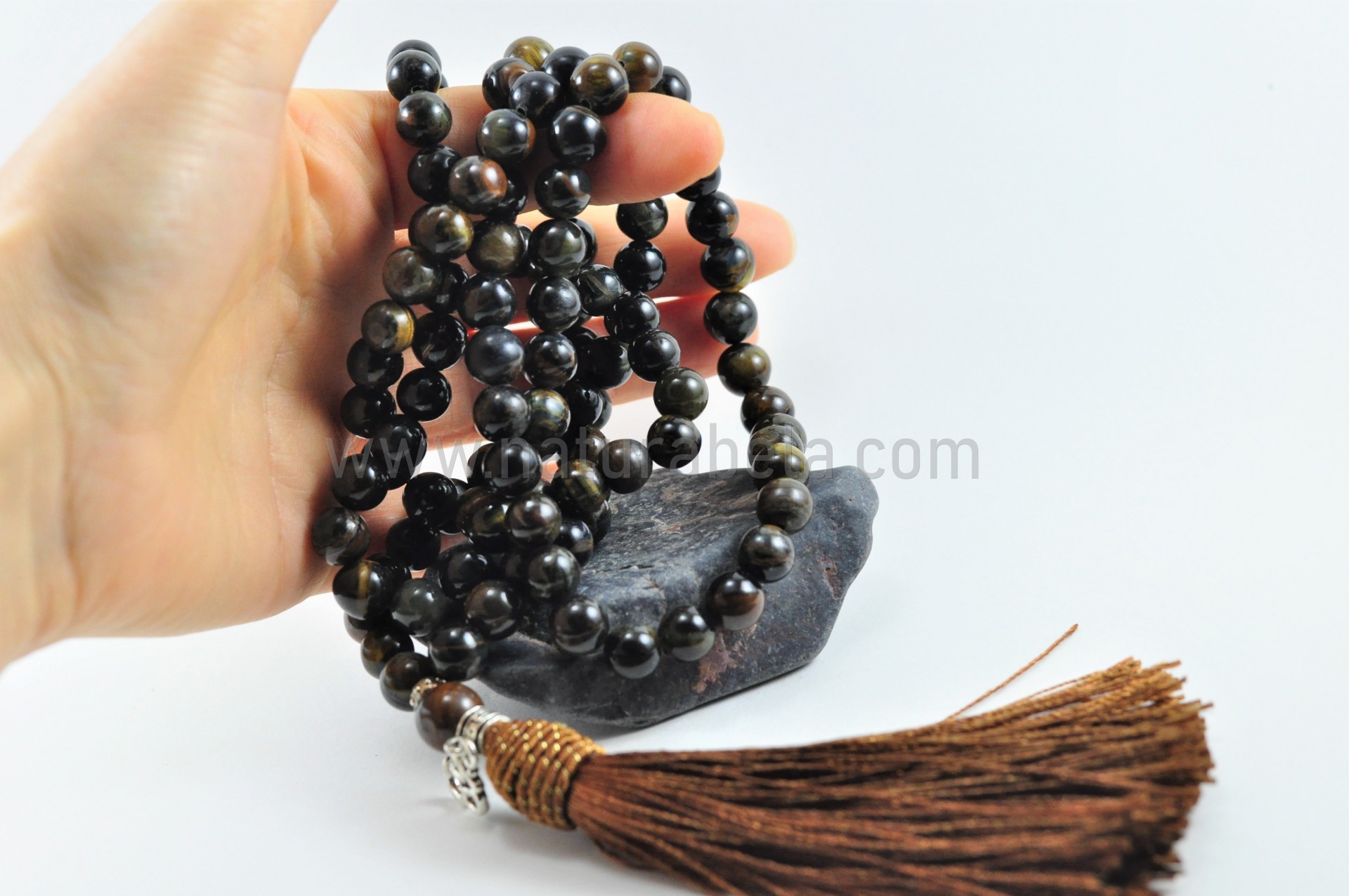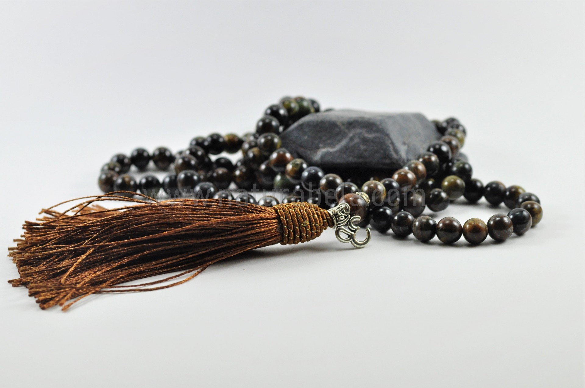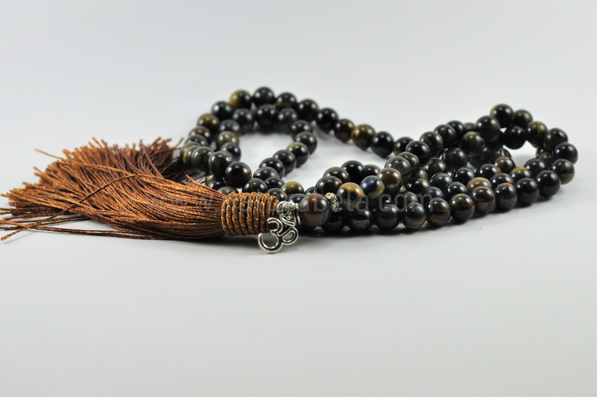 Mala Budista de Pedra Olho de Falcão 8mm - Terço Tibetano OM