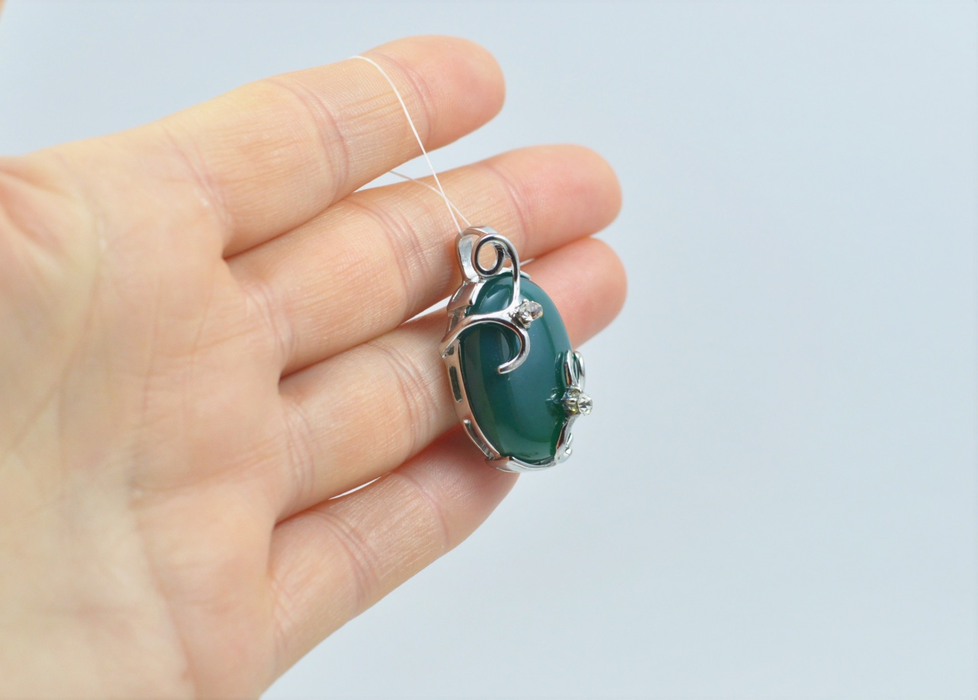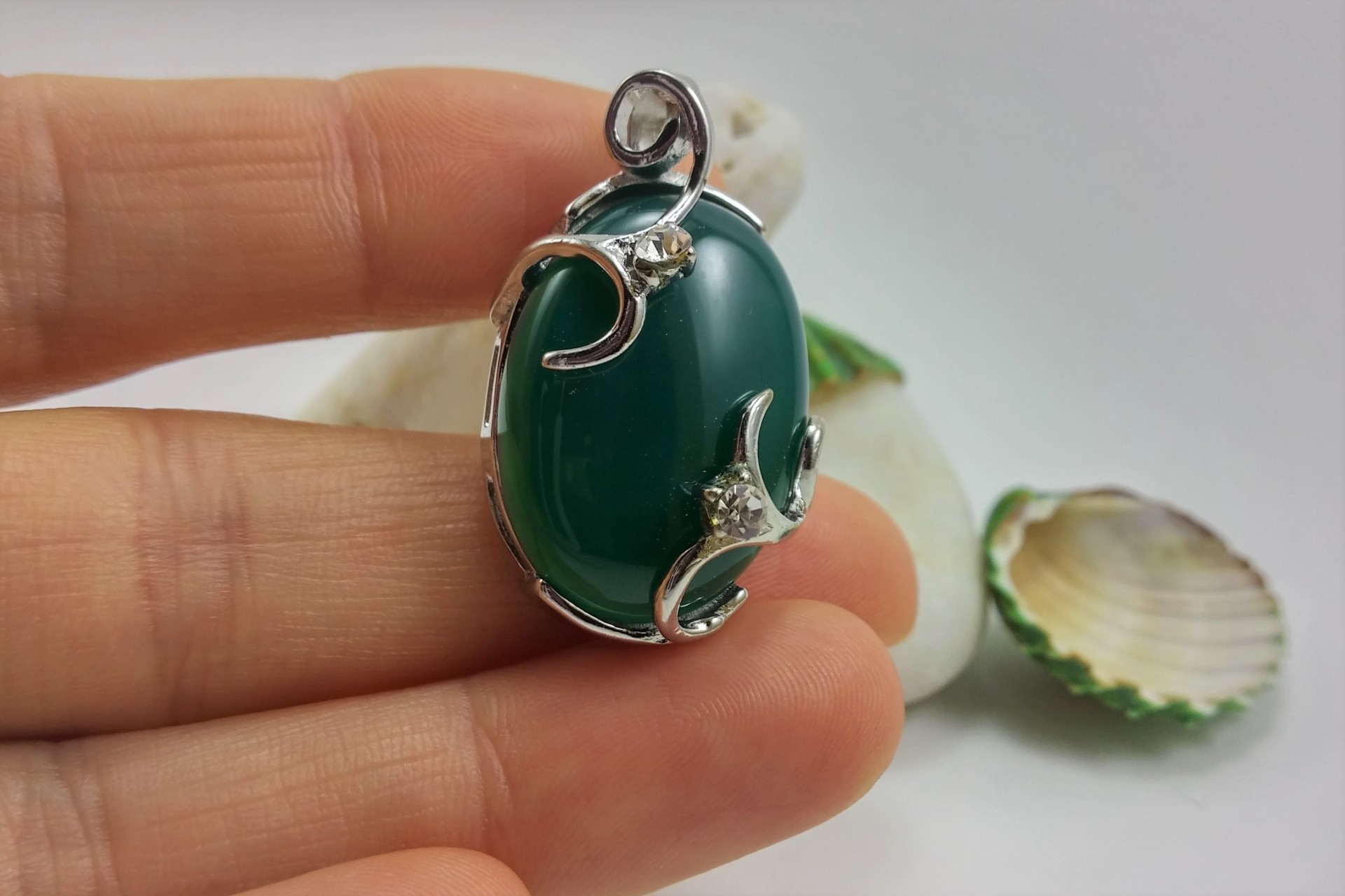 Pendente Ovalado de pedra natural Ágata Verde com Zircónias!