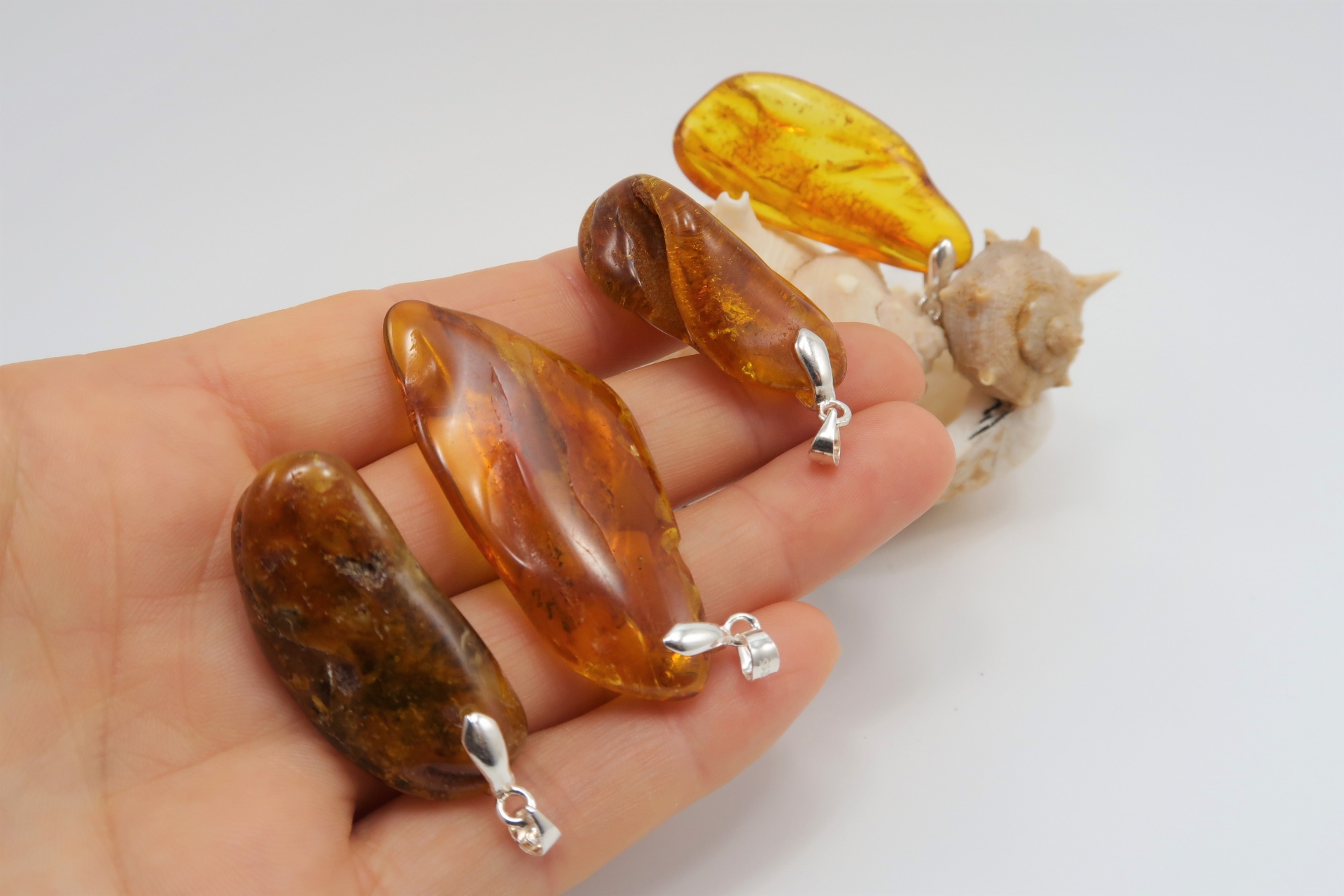 Estes pendentes de Âmbar são todos diferentes quer em tamanho, cor, aspecto.