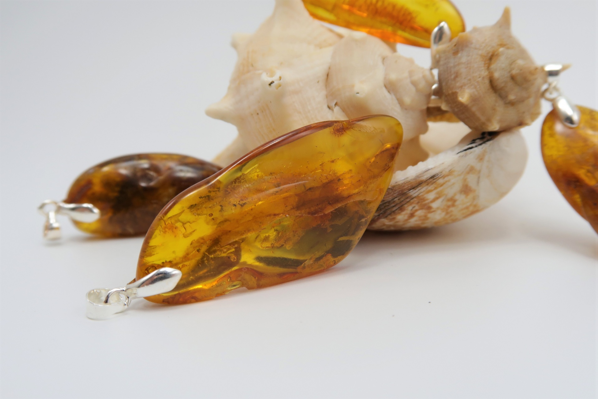São peças naturais provenientes de resina fossilizada. Esta resina contém uma substância (ácido succínico) que em contacto com o calor da pele é capaz de actuar no processo terapêutico assim como, agir no combate de inflamações e melhoras do sistema imunológico.