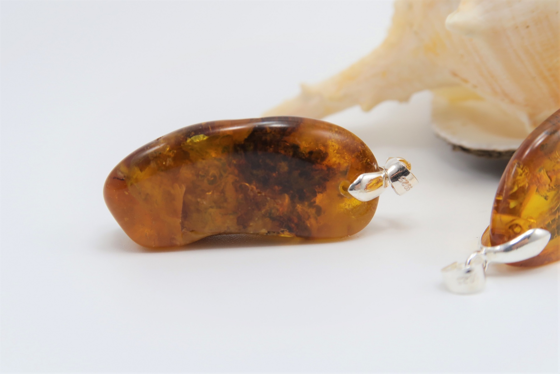 Pendente Âmbar com aplique em prata 925 para colocar em fio ou gargantilha!