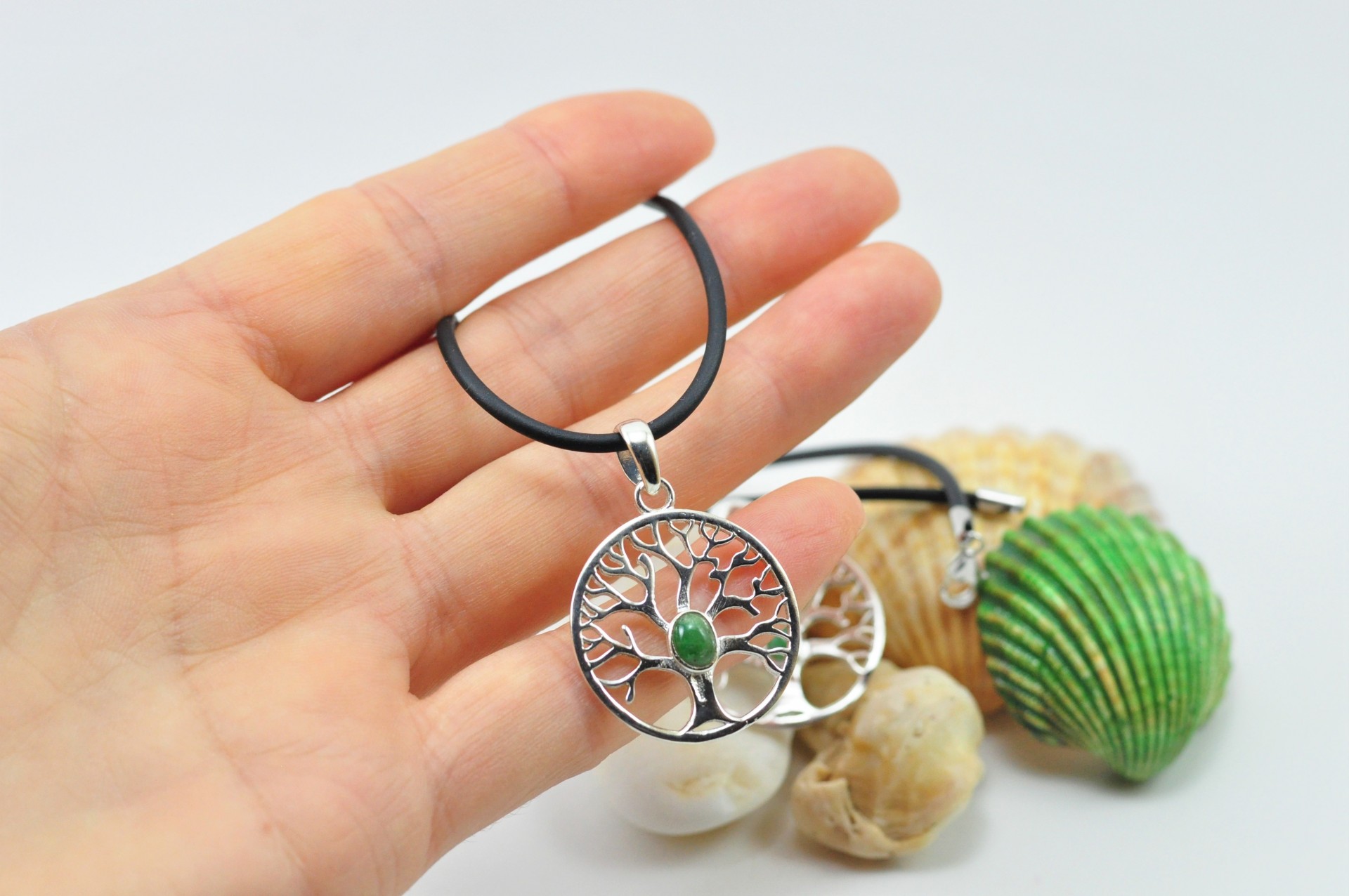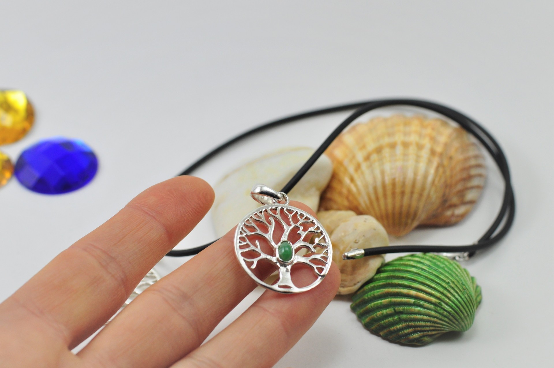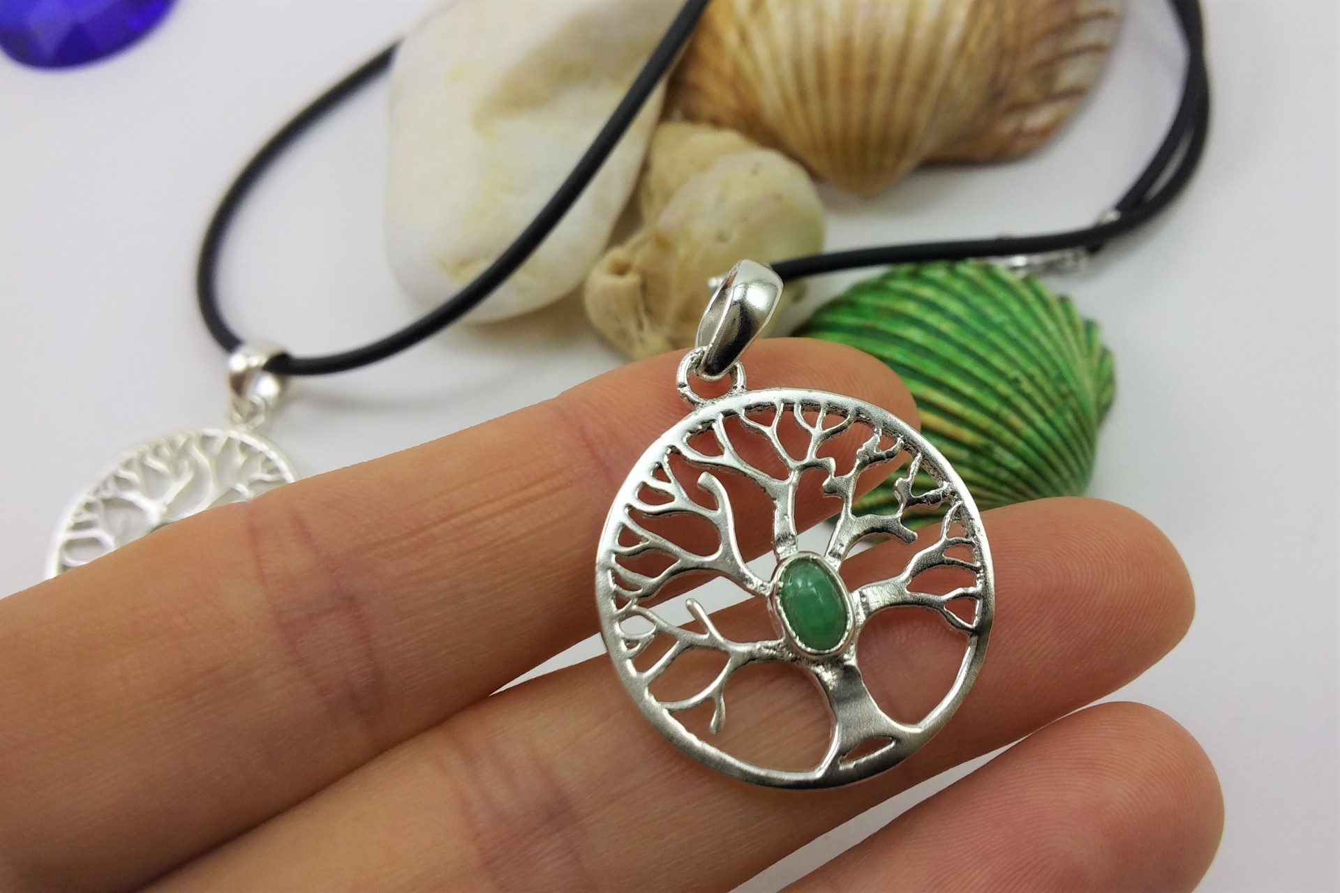 Pendente Árvore da Vida com Cabochão Esmeralda oval em PRATA!