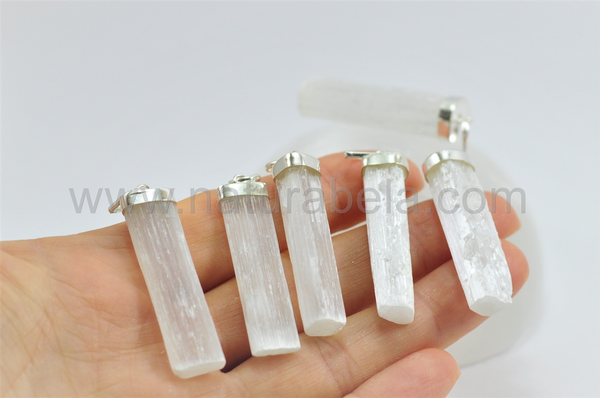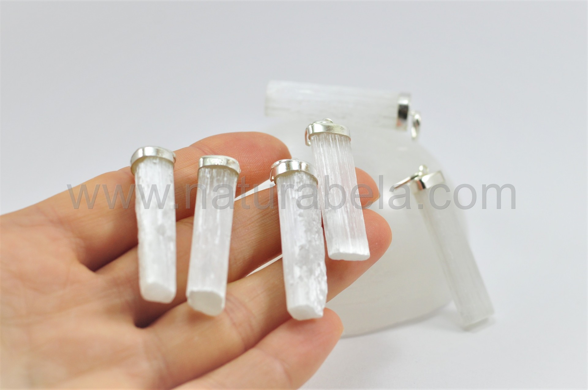 Pendente barra de Selenite em Prata!