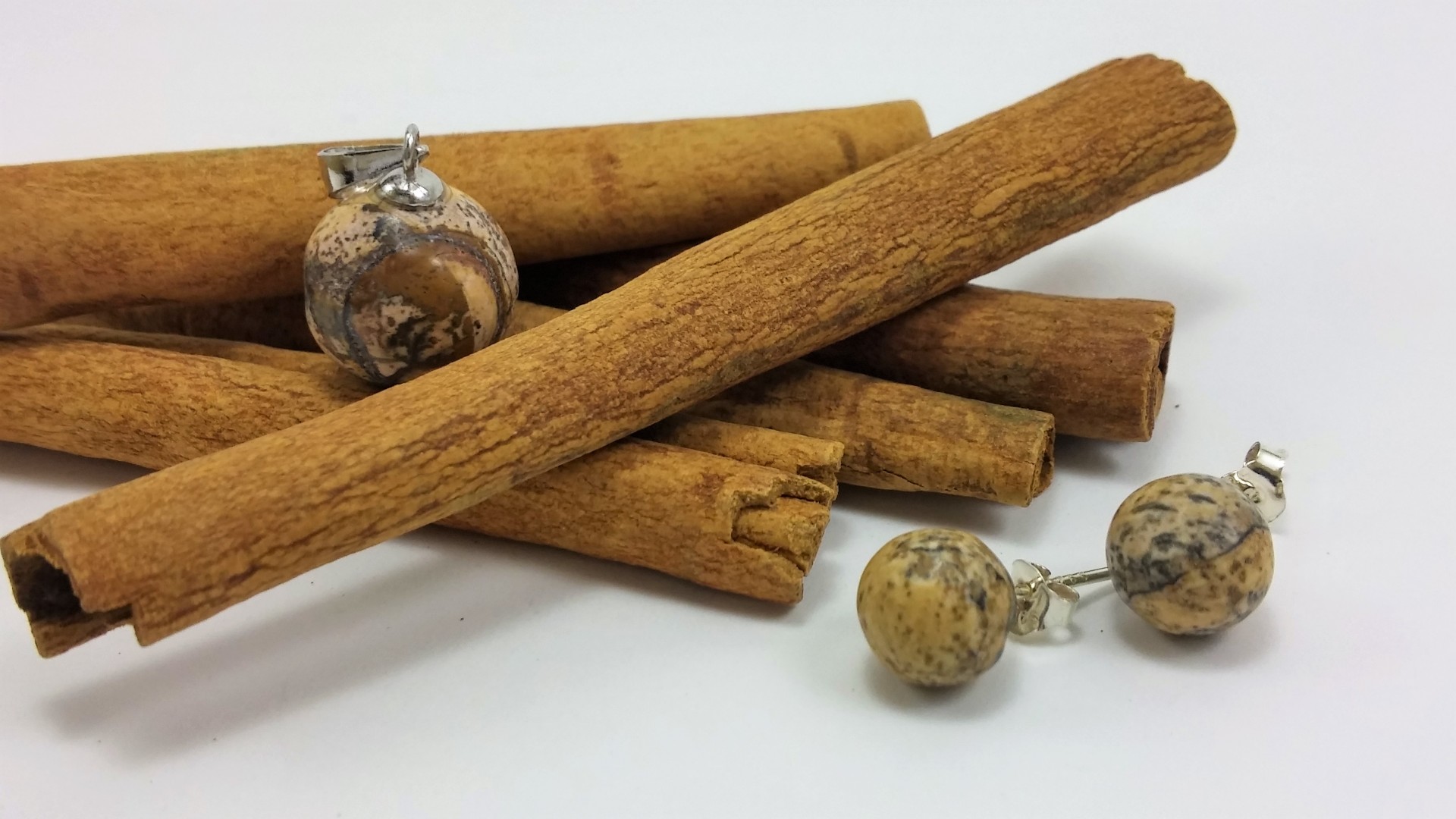 Conjunto Pendente e Brincos em Pedras Naturais Jaspe "Paisagem"