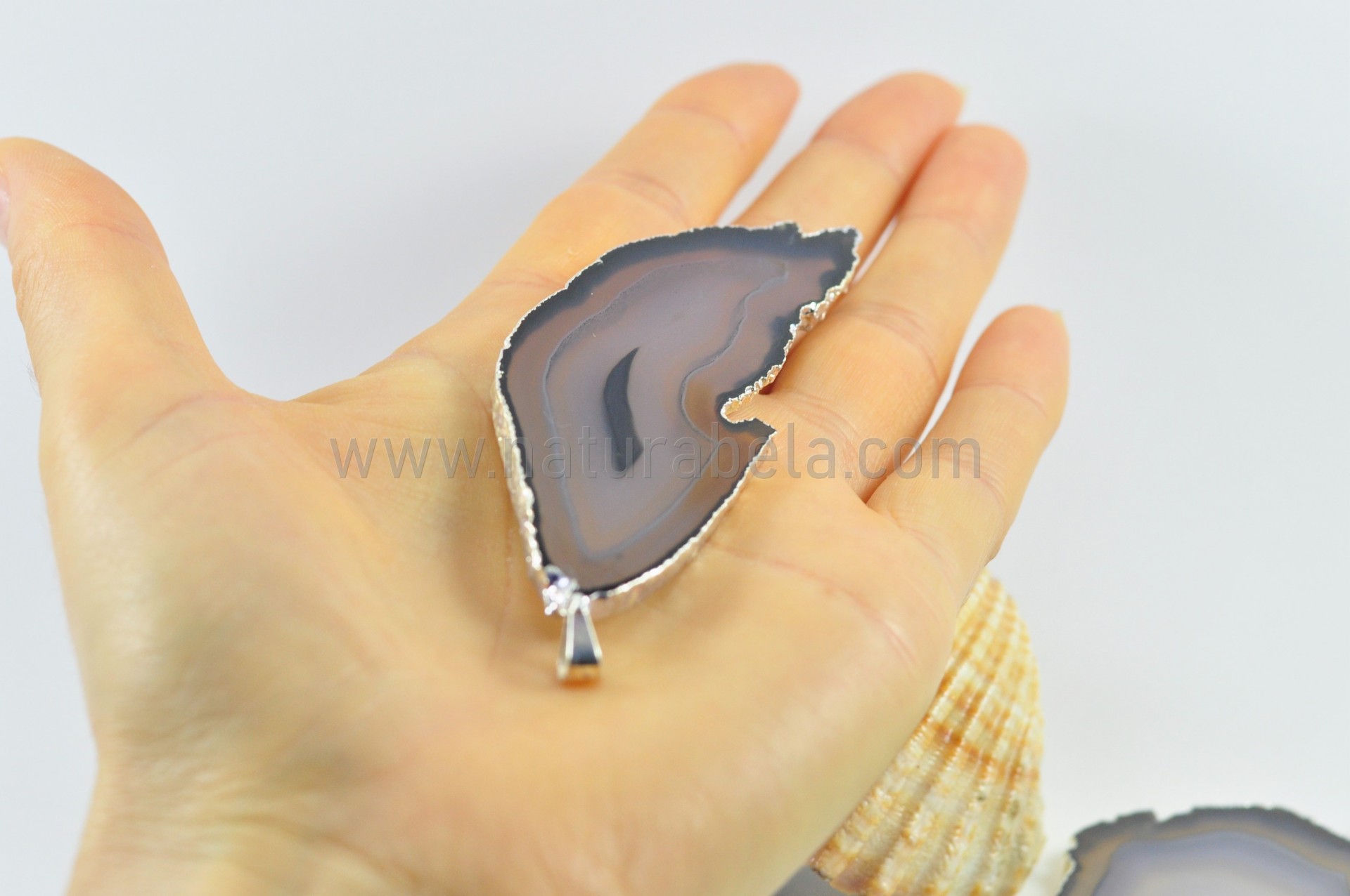 Pendente Chapa de Agata com banho electrolítico de Prata!