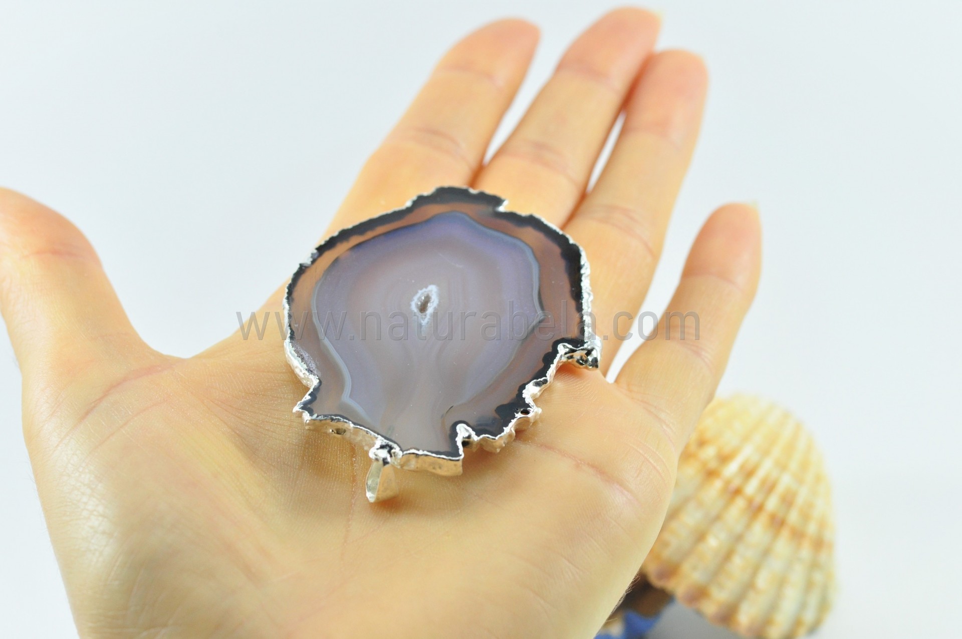 Pendente em Pedra/Cristal Ágata com bordas em banho electrolítico de PRATA.
