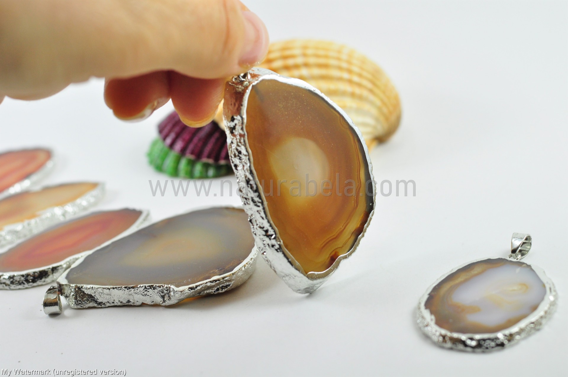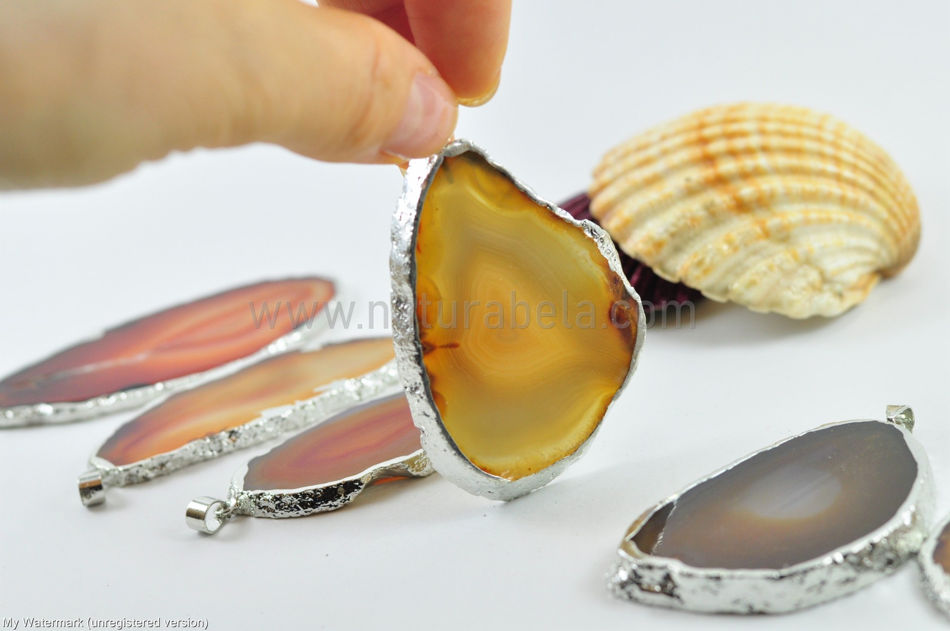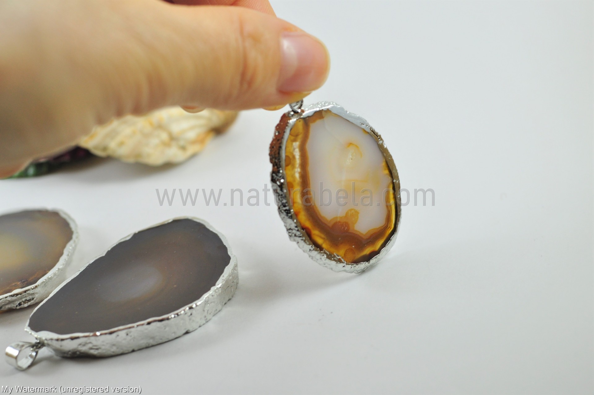 Pendente Chapa de Agata com banho electrolítico de Prata!
