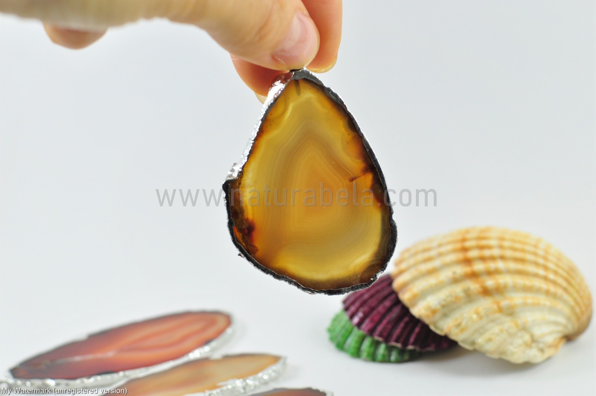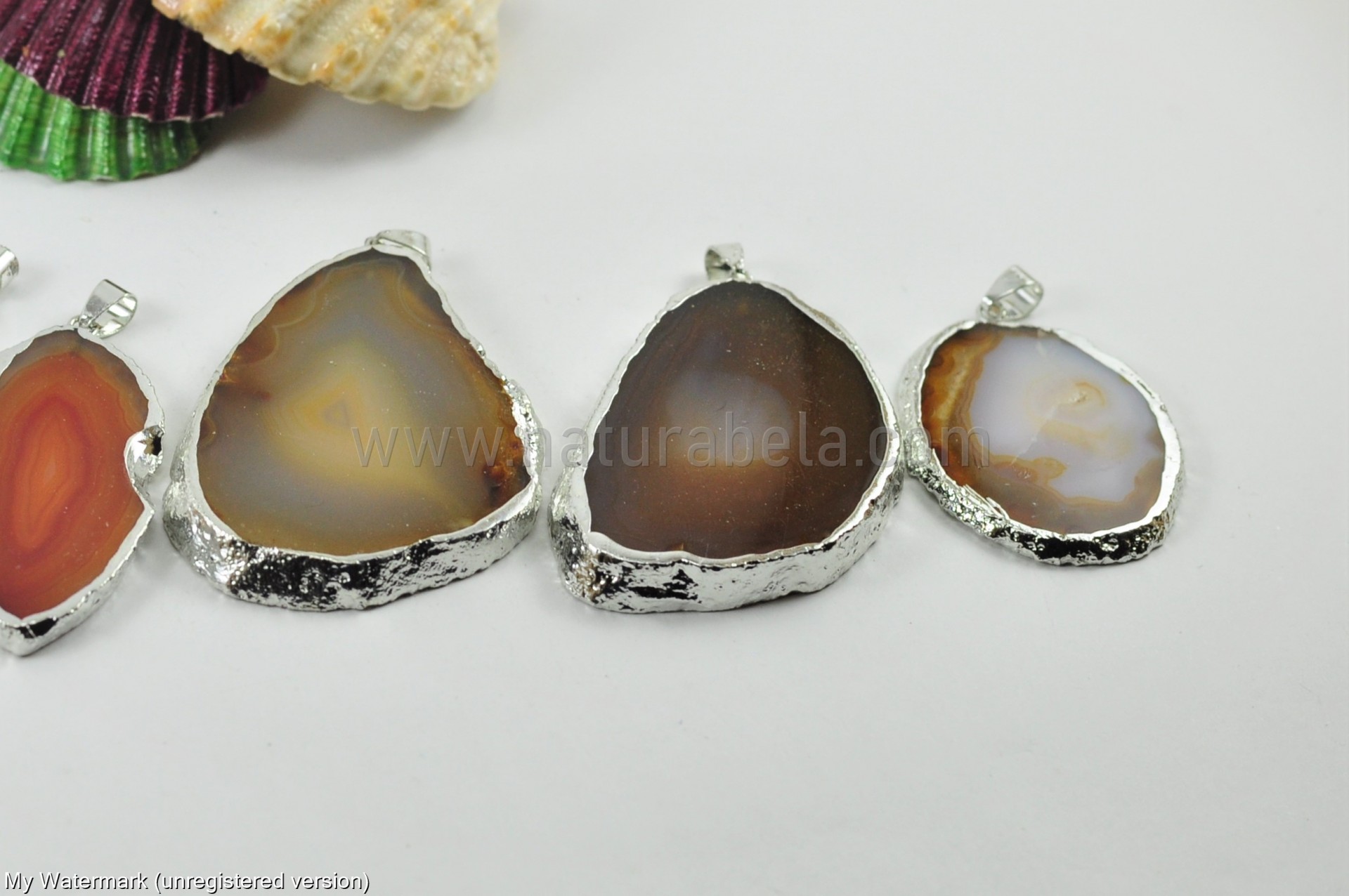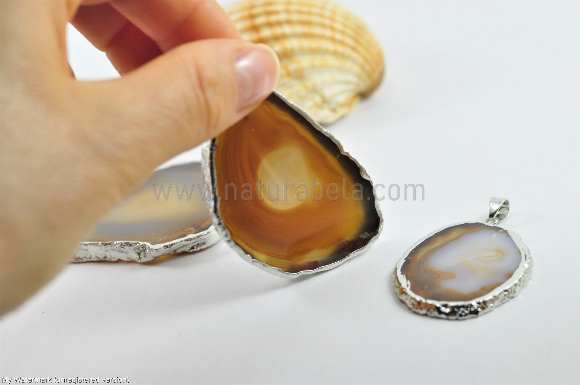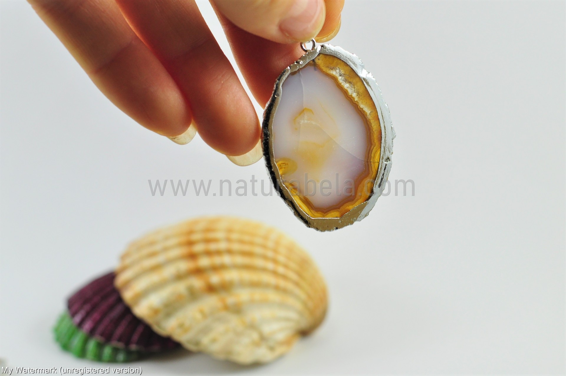 Pendente Chapa de Agata com banho electrolítico de Prata!