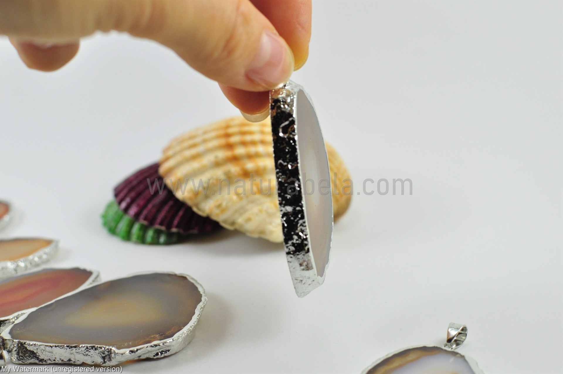 Pendente em Pedra/Cristal Ágata com bordas em banho electrolítico de PRATA.