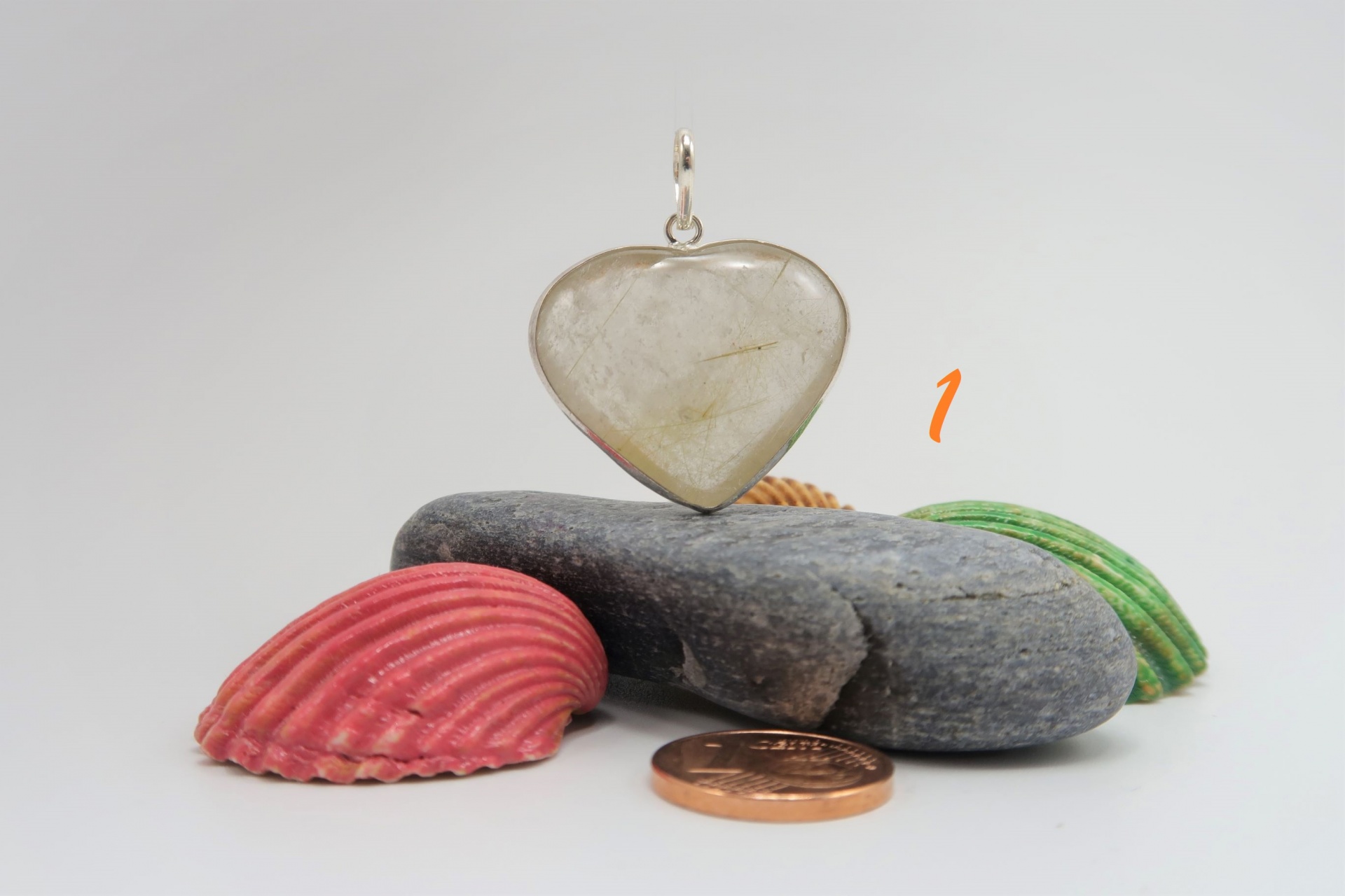 Pendente em Prata de Lei 925 com formato Coração com Quartzo Rutilado!