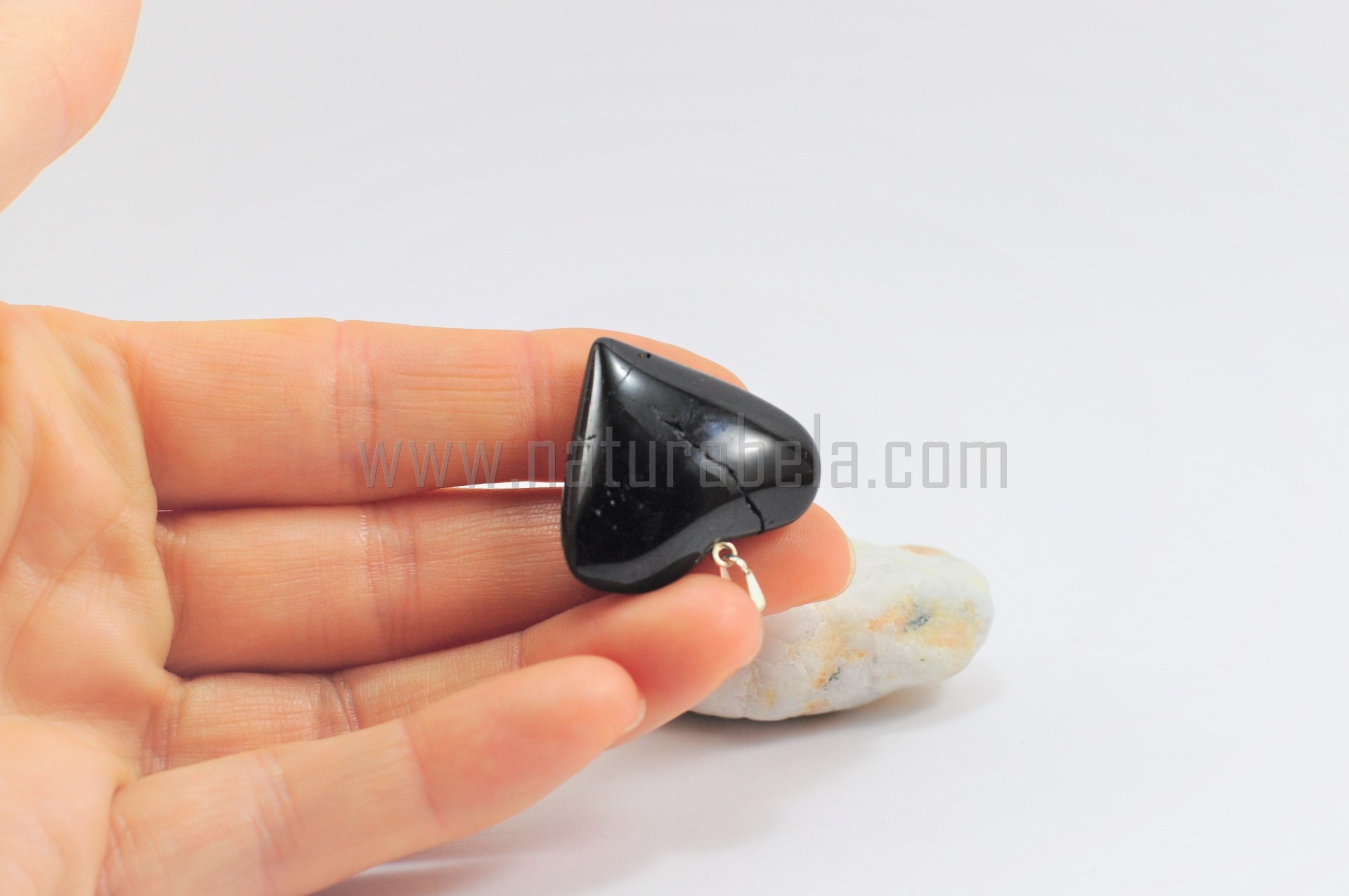 Pendente em forma de coração em pedra Turmalina Negra!