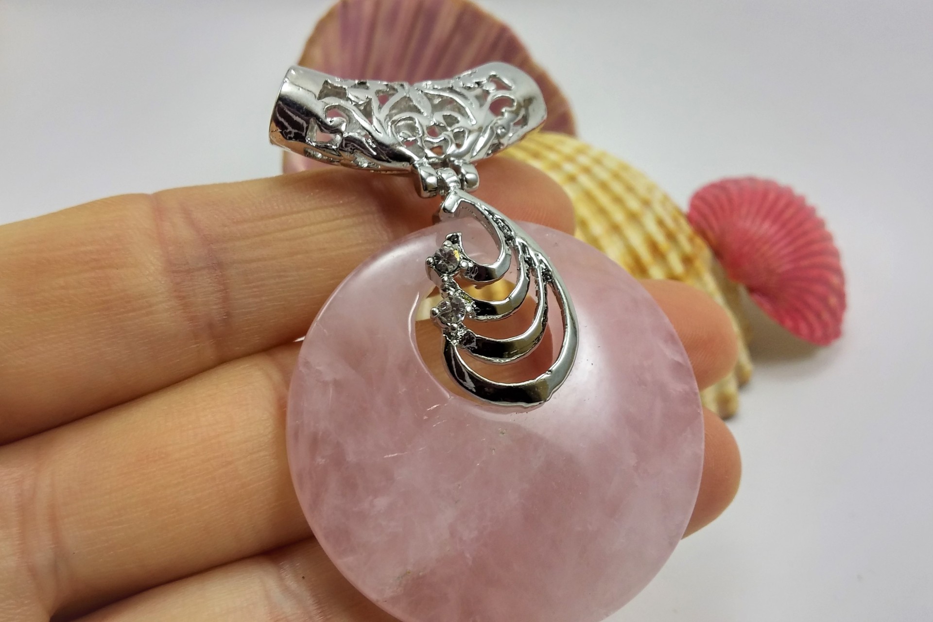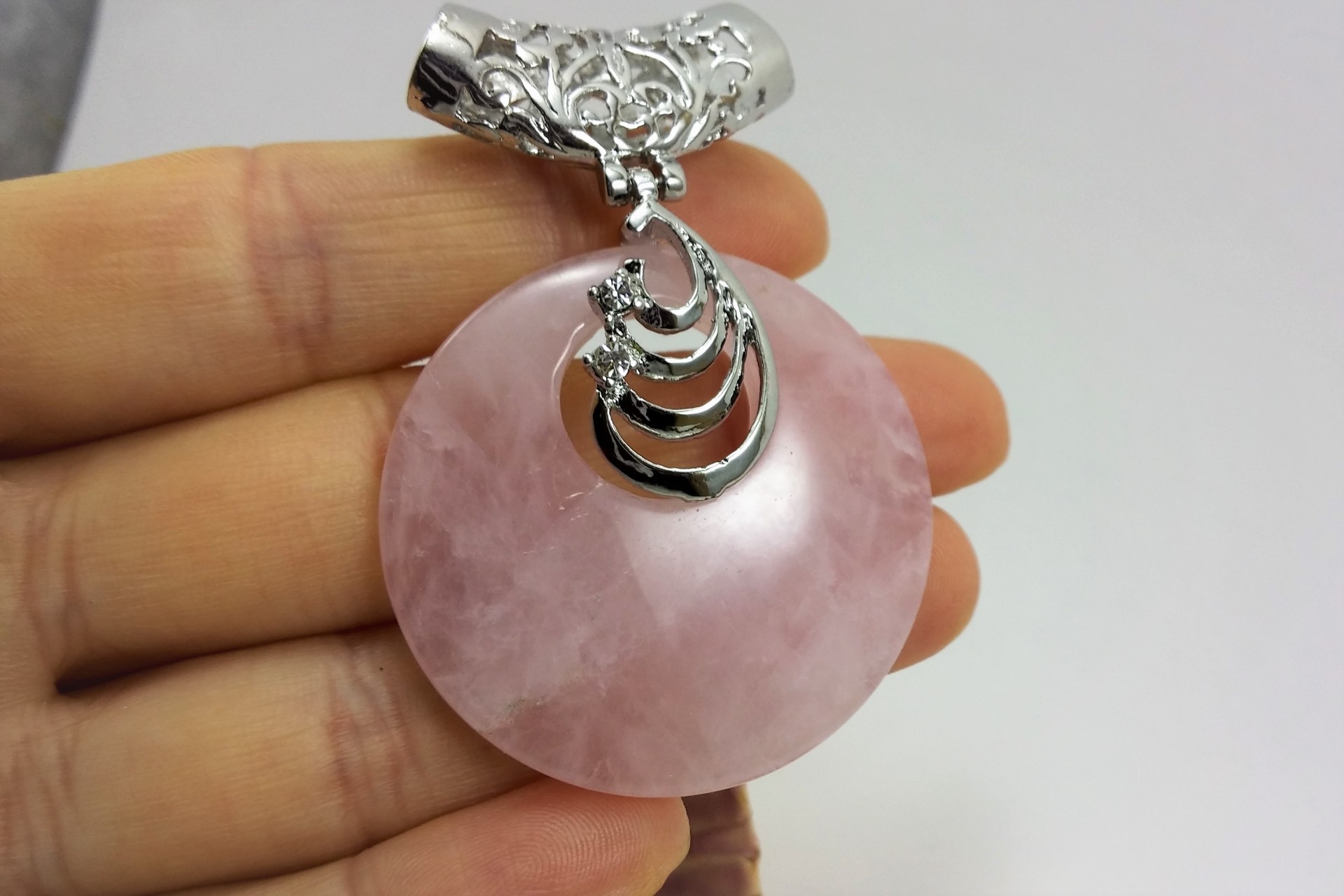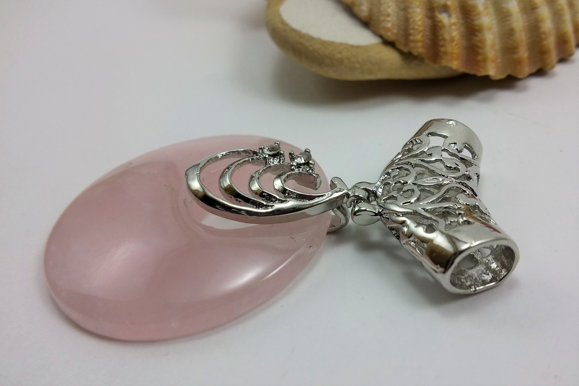 Pendente de quartzo rosa com cilindro filigrana
