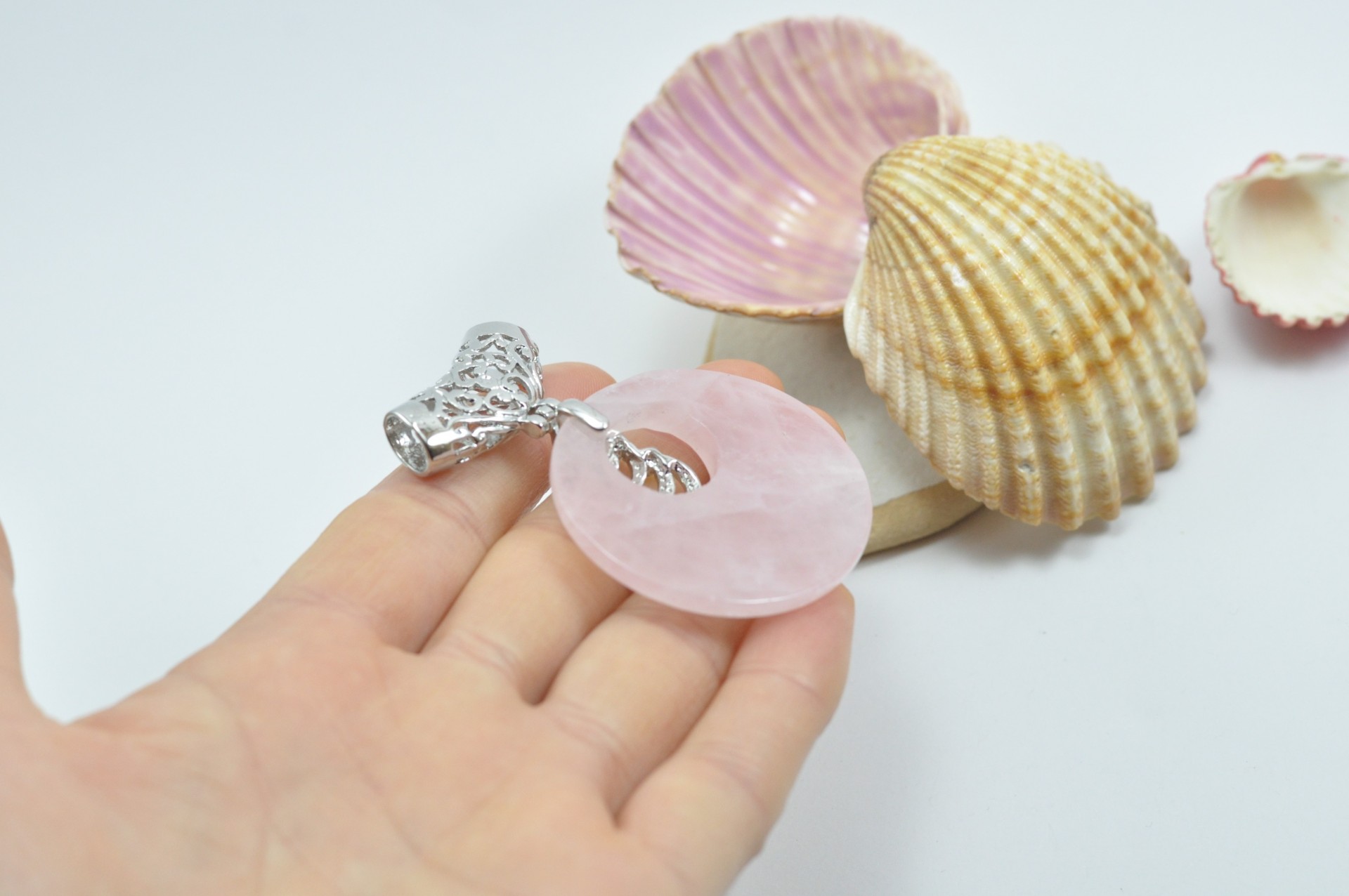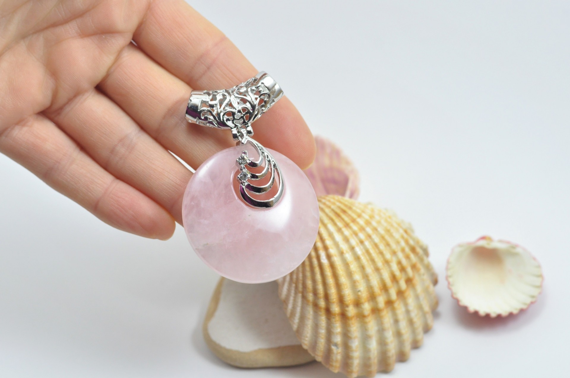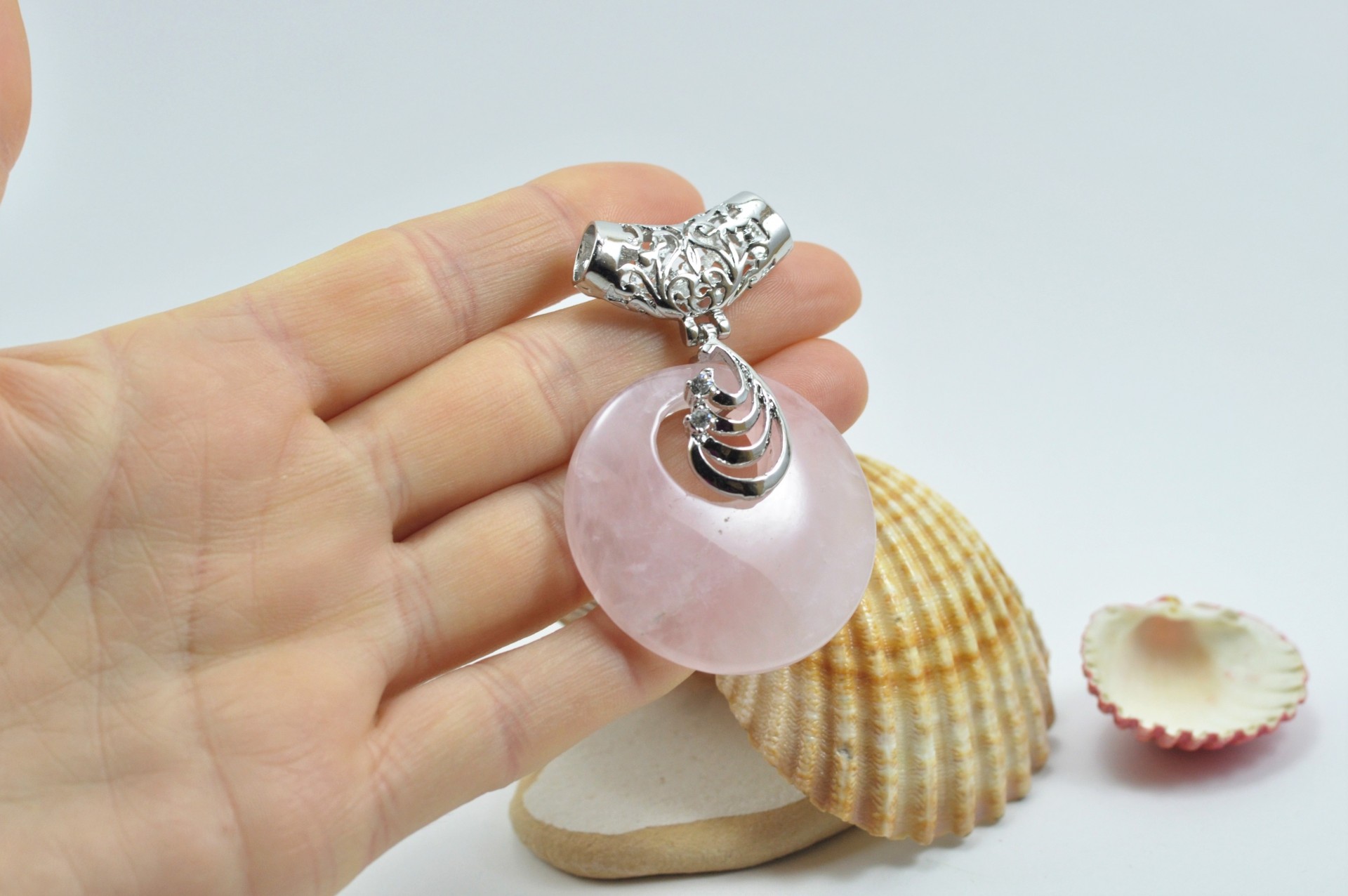 Pendente de quartzo rosa com cilindro filigrana