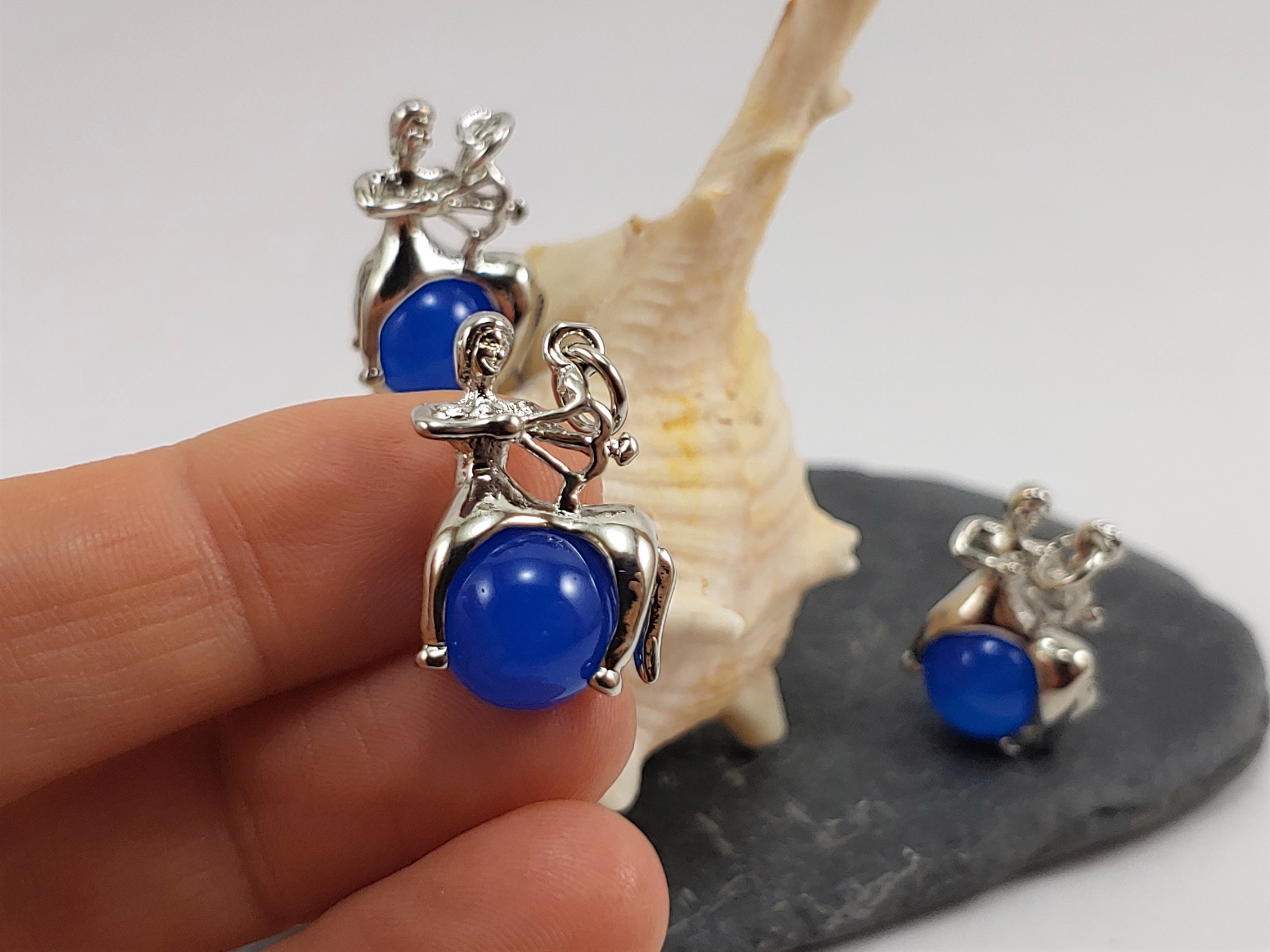 Este pendente contém uma linda bola de calcedónia com 1cm inserida numa armação prateada do signo em questão. São simples e elegantes para usar no dia a dia para nos sentirmos com muito mais força.