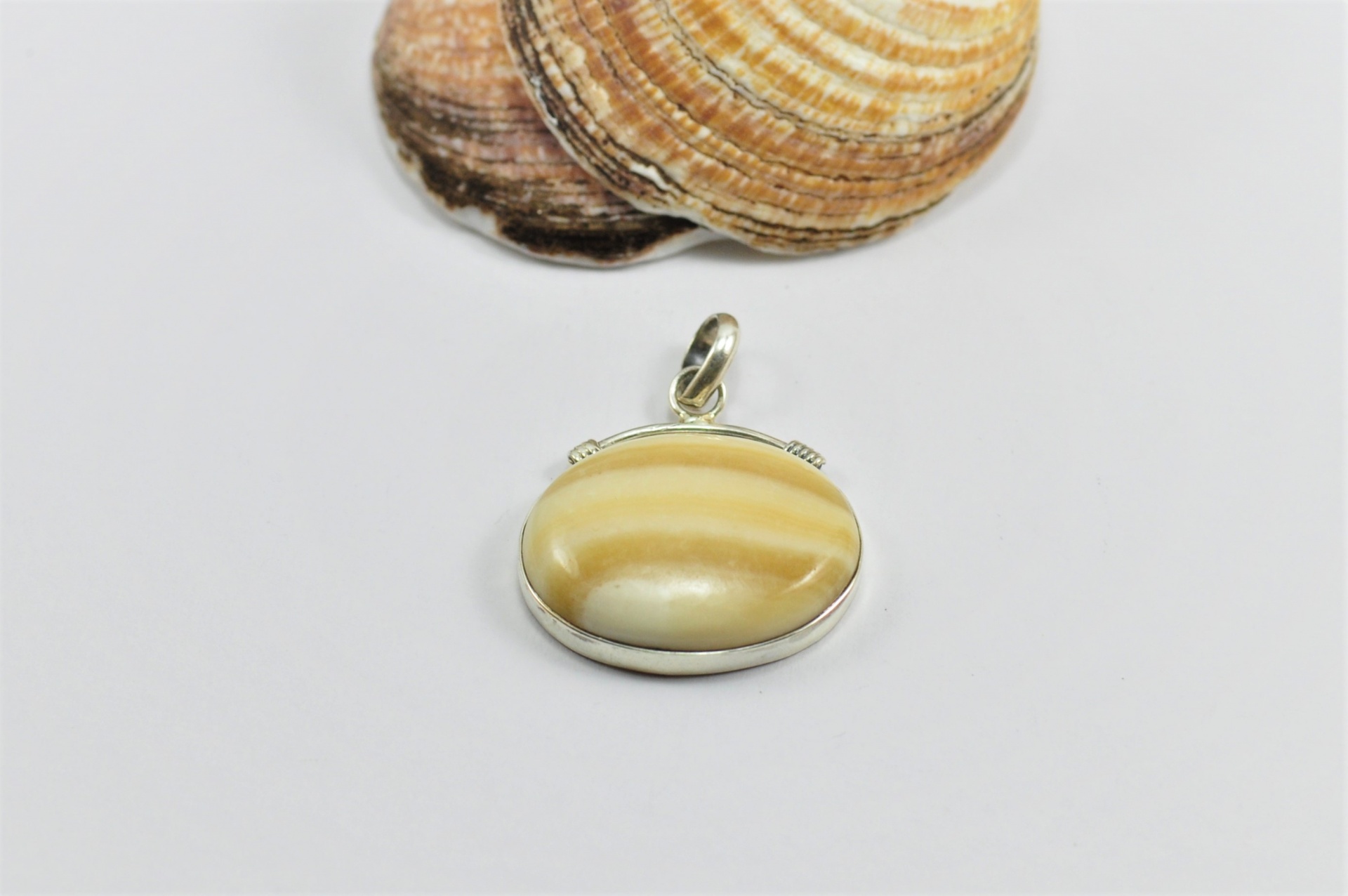 Pendente em Prata de Lei 925 em arco com a Pedra Ágata Amarela Rendada!