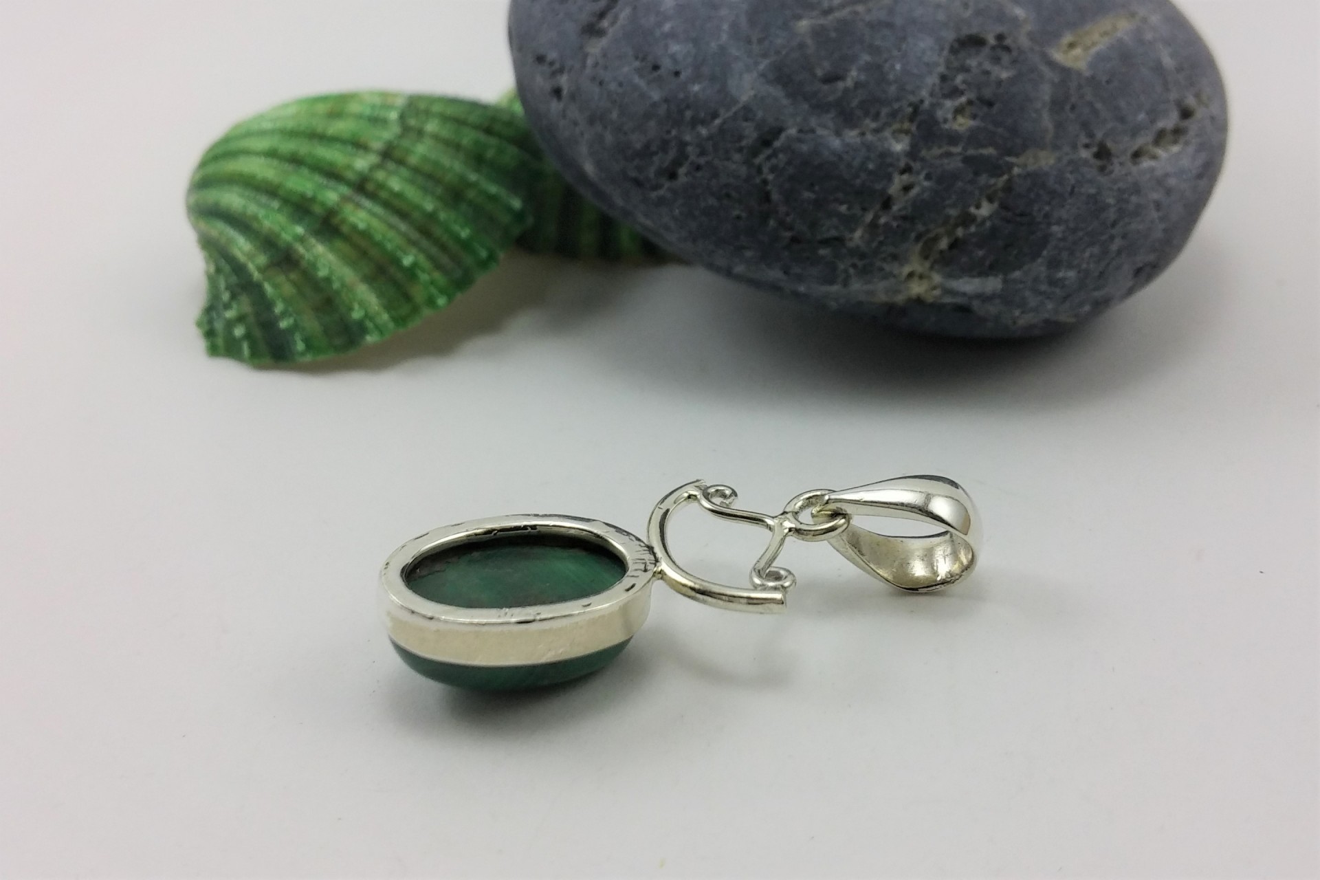 Pendente em Prata de Lei 925 com pedra Malaquita!
